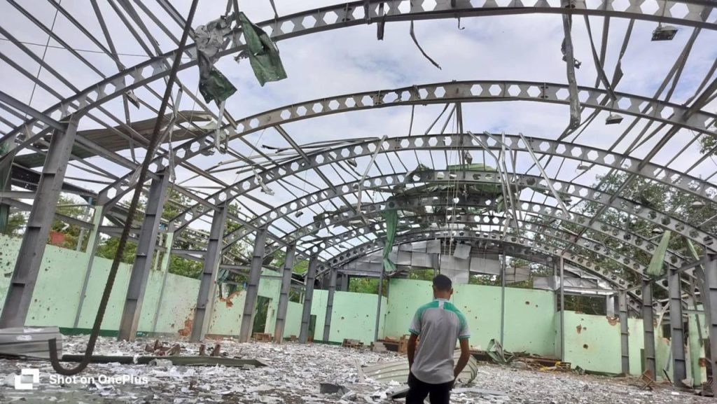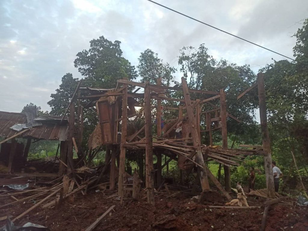 ပုံစာ။ သီပေါနှင့် သပိတ်ကျင်းမှ TNLA ၊ MDY PDF တို့ ခိုကပ်နေသည့်နေရာများ ရှင်းလင်းထားမှုမြင်ကွင်း။ ေလောင်တွေ ခိုနေတာ။ အဲဒီနေရာကို ဂျက်ဖိုက်တာနဲ့ ပေါင် ၅၀၀ ဗုံး ၄ လုံး ကြဲချတာတဲ့။ အဲဒီထဲက အဆောက်အအုံတွေ ပျက်တာရှိတယ်။ သေဆုံး ဒဏ်ရာရတာ မရှိဘူးလို့ သိရပါတယ်”ဟု သီပေါဒေသခံတစ်ဦးက MT News ကို ပြောသည်။