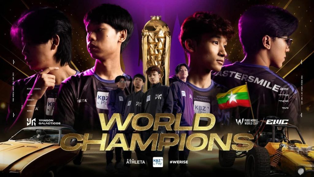 မြန်မာနိုင်ငံကိုယ်စားပြု E Sports အသင်းတစ်သင်းဖြစ်တဲ့ Yangon Galacticos အသင်းဟာ 2025 PUBG MOBILE WORLD CUP (PMWC 2025) ချန်ပီယံဆုကို မြန်မာနိုင်ငံအတွက် ပထမဆုံးအဖြစ် ဒီနေ့ညမှာ ဆွတ်ခူး ရယူနိုင်ခဲ့ပြီ ဖြစ်ပါတယ်။