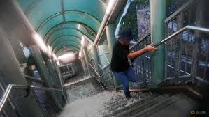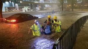 ဟောင်ကောင်မြို့အတွင်းအဆောက်အအုံအမြင့်များမှ အဆင်းအတက်ပြုလုပ်ရန် တည်ရှိတတ်ကြသော လှေကားများတွင်လည်း မိုးရေများ အဆက်မပြတ်စီးဆင်းလျက်ရှိသည်။ မြို့အတွင်း အကြီးအကျယ် ရေလွှမ်းမိုးနေသည့်အခြေအနေကြောင့် ရာသီဥတုဗျူရိုက အမြင့်ဆုံးရာသီဥတုသတိပေးချက်ဖြစ်သော အနက်ရောင်မိုးမုန်တိုင်းသတိပေးကြေညာချက်ကို ဩဂုတ်လ ၅ ရက် မွန်းလွဲ ၃ နာရီအထိ ထုတ်ပြန်ခဲ့သည်။
