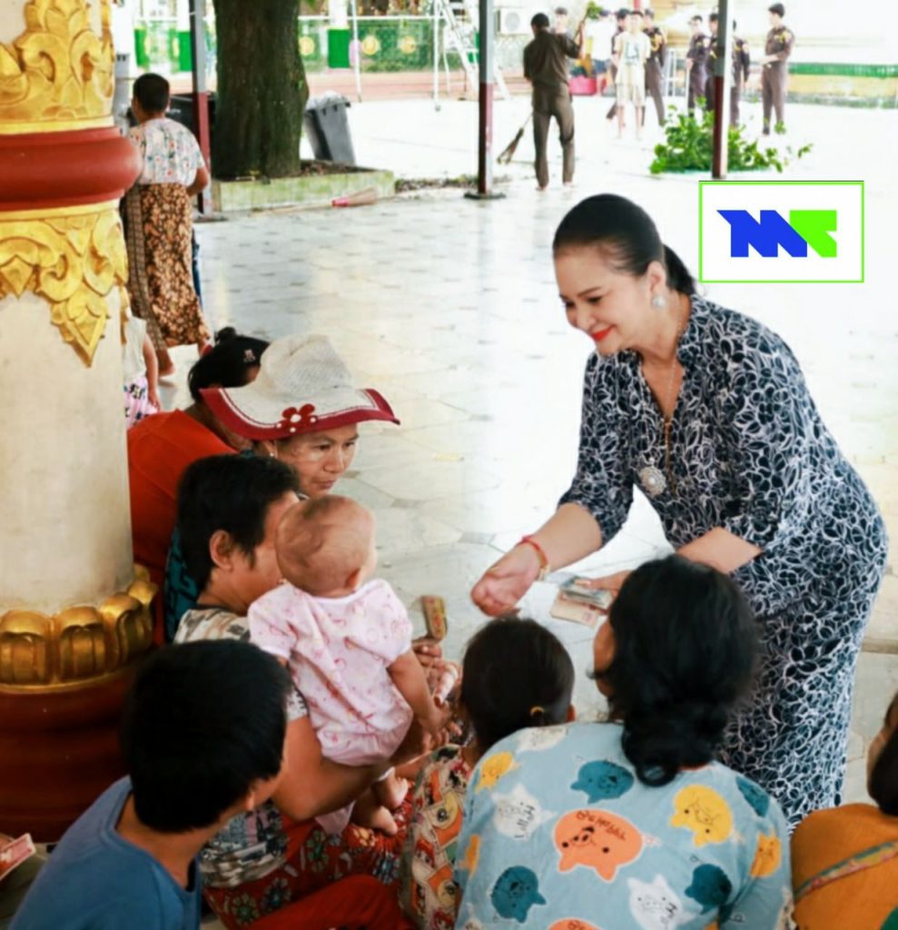 “အန်တီတို့က အမြဲတမ်းလစဉ်လည်း အလှူတွေလုပ်ဖြစ်ပါတယ်။ အန်တီက နိုင်ငံခြားသွားပြီး ပြန်လာတာတို့ ပြည်ပပြန်ထွက်တာတို့ဆိုရင် ပြည်တော်ဝင်ပြည်တော်ထွက်ဆိုပြီး လှူဖြစ်ပါတယ်။ ဘုရားတွေ ဘုန်းကြီးကျောင်း ၁၂ ကျောင်းကို ဦးတိုက်သွားတာပါ။ ဒီအစဉ်အလာအတိုင်း လှူဖြစ်တာပါ။ ဒီနေ့မှာတော့ ကျိုက္ကဆံမှာရှိတဲ့ ဘုရား သာသနာပွဲတွေ၊ ကုသိုလ်တစ်မျိုးလှူဖြစ်တာပါ။ ဘုရားပေါ်က ဆရာတော်တွေကို တစ်ပါးနှစ်သောင်း၊ တစ်သောင်းစတာတွေလှူသလို တကယ်ခက်ခဲနေသူတွေကိုလည်း လှူဖြစ်ပါတယ်”လို့ ဒေါ်သီသီဝင်းက MT Entertainment ကို ပြောပါတယ်။