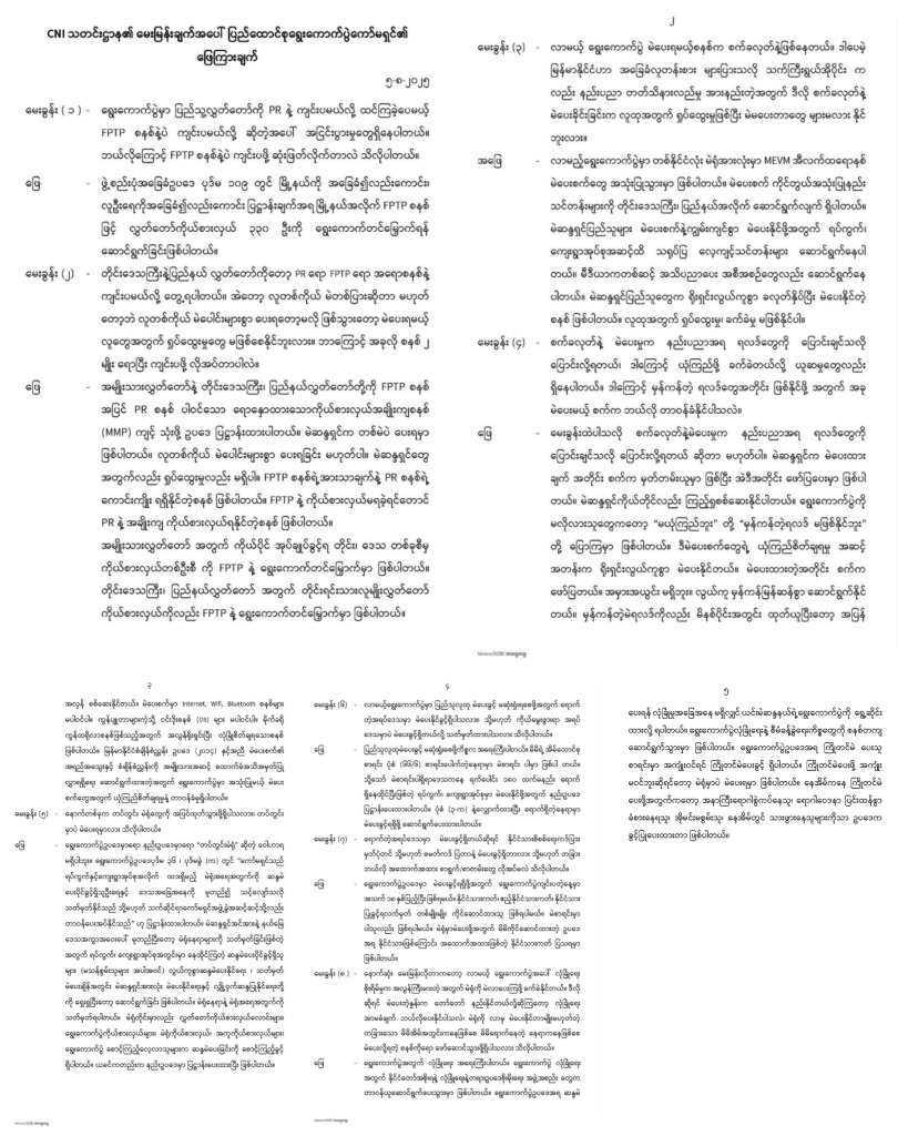အမျိုးသားလွှတ်တော်နှင့် တိုင်းဒေသကြီး၊ ပြည်နယ်လွှတ်တော်တို့ကို FPTP စနစ်အပြင် PR စနစ် ပါဝင်သော ရောနှောထားသော ကိုယ်စားလှယ်အချိုးကျစနစ် (MMP) ကျင့်သုံးရန် ဥပဒေပြဋ္ဌာန်းထားကြောင်း၊ မဲဆန္ဒရှင်က တစ်မဲသာပေးရမည်ဖြစ်ပြီး လူတစ်ကိုယ် မဲပေါင်းများစွာ ပေးရခြင်းမဟုတ်ဘဲ မဲဆန္ဒရှင်များအတွက်လည်း ရှုပ်ထွေးမှုလည်းမရှိပါကြောင်း UEC က ဖြေကြားထားသည်။