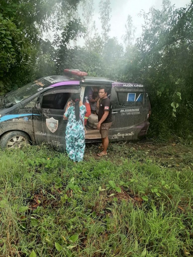 လူနာတင်ယာဉ်တစ်စီး အမြန်လမ်းမှာ စလစ်ဖြစ်ကာ အရှိန်လွန် လမ်းဘေးထိုးကျရပ်တန့်ခဲ့တာကြောင့် ယာဉ်ပေါ်ပါ လူနာနဲ့ လူနာစောင့် နှစ်ဦးအနက် လူနာစောင့် သတိလစ်မေ့မြောဝေဒနာခံစားခဲ့ရလို့ လှည်းကူးအခြေစိုက်ပရဟိတအသင်းတွေက ဝိုင်းဝန်းကူညီဆေးရုံတင်ပို့ပေးရတဲ့ ဖြစ်စဉ် ဒီနေ့ ဩဂုတ် ၆ ရက် မနက် ၁၀ နာရီခွဲဝန်းကျင်က ဖြစ်ပွားခဲ့တယ်လို့ သိရပါတယ်။