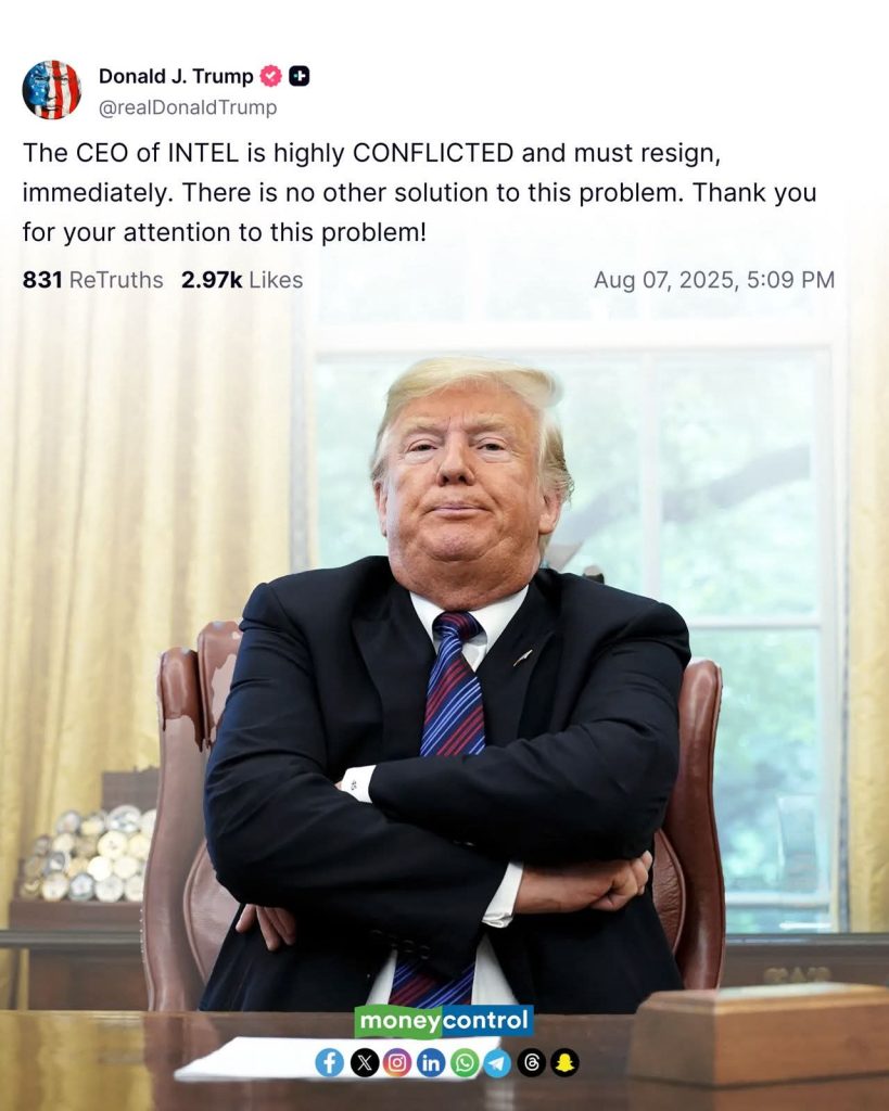 “Intel ရဲ့ CEO ဟာ အလွန်အမင်း အကျိုးစီးပွားပဋိပက္ခရှိပြီး ချက်ချင်းနုတ်ထွက်ရမယ်” ဟု ထရမ့်က Truth Social တွင် ရေးသားခဲ့သည်။