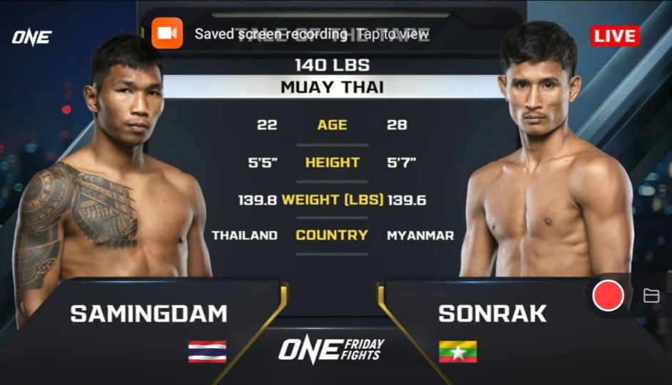 ဒီနေ့ည ယှဥ်ပြိုင်တဲ့ One Friday Fights 119 မှာ မြန်မာဖိုက်တာ စိန်လုံးချောနဲ့ ထိုင်းဖိုက်တာ ဆနစ်၊ ခေါင်ပွဲမှာ မြန်မာကိုယ်စားပြုဖိုက်တာ ဆွန်ရက်နဲ့ မိုးထက်အောင်ကို အနိုင်ယူထားတဲ့ လိပ်နင်ဂျာ ဆမင်ဒန်တို့ ဆုံရာမှာ စိန်လုံးချော အလဲထိုးနဲ့ ရှုံးသွားပြီး ဆွန်ရက်ကလည်း ခေါင်ပွဲမှာ ဆမင်းဒန်ကို ဒိုင်အားလုံးဆုံးဖြတ်ချက်နဲ့ ရှုံးနိမ့်သွားပါတယ်။
