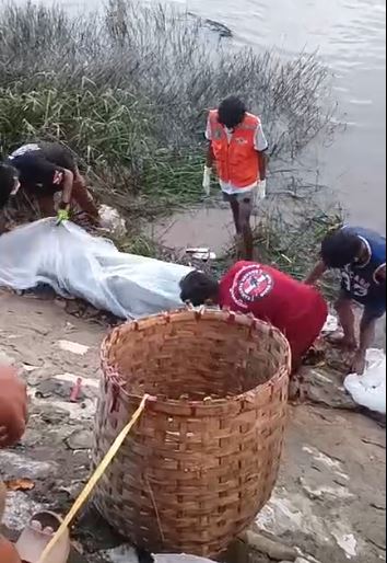 “ကျွန်တော်တို့လည်း အလောင်းတွေ့တယ်ဆိုလို့ အကြောင်းကြားလို့ သွားဆယ်တာ။ ရေထဲမှောက်လျက်ကြီး ပေါ်နေတာ။ ဆွဲလှန်လိုက်မှ အဲဒီလိုတိုင်ကိုခွ ကြိုးတုပ်ထားမှန်းသိတာ။ အသက် ၃၀၊ ၄၀ လောက်တော့ ခန့်မှန်းရတယ်။ တခြားဘာဒဏ်ရာတွေရှိလဲတော့ မစစ်ကြည့်မိဘူး။ မြန်မြန်ပဲ သယ်ပြီး သက်ဆိုင်ရာတွေဆောင်ရွက်နိုင်ဖို့ ဆေးရုံအမြန်ပို့ခဲ့တယ်” လို့ ရာမညအရေးပေါ်လူမှုကယ်ဆယ်ရေးနှင့်ရှာဖွေကယ်ဆယ်ရေးအဖွဲ့မှ တာဝန်ရှိသူက MT News ကဆက်သွယ်မေးမြန်းတာကို ပြန်လည်ဖြေကြားပါတယ်။