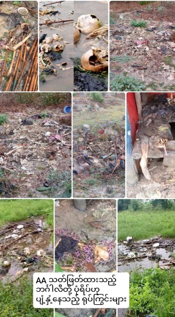 ထို့အပြင် ရွာမှ ထွက်ပြေးရန် မတတ်နိုင်သူများ၊ AA မလိုလားသူများကို AA က အကျဉ်းချပြီး ဓာတ်ဆီဖြင့် မီးရှို့သတ်ဖြတ်ခဲ့သည်ဟု အသက်ရှင်ကျန်ရစ်သူများက ပြောပြခဲ့ကြသည်။ AA ၏ ထိုကဲ့သို့လုပ်ရပ်သည် သက်သေအထောက်အထားများကို ဖျက်ဆီးရန် ရည်ရွယ်ချက်ရှိပုံရပြီး လူ့အရိုးစုများ အပါအဝင် လူ့အလောင်းများ၏ အကြွင်းအကျန်များကို တွေ့ရှိရခြင်းက AA ကျူးလွန်သော ကြောက်မက်ဖွယ်ရာ အဖြစ်အပျက်များကို အတည်ပြုပေးထားသည်ဟုလည်း ARNC က ပြောသည်။