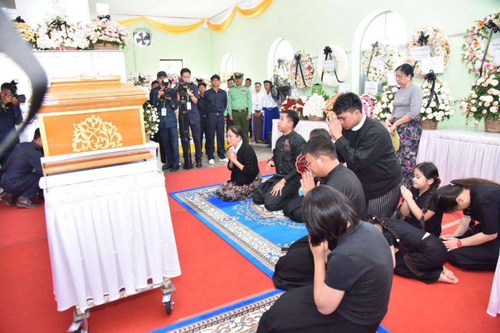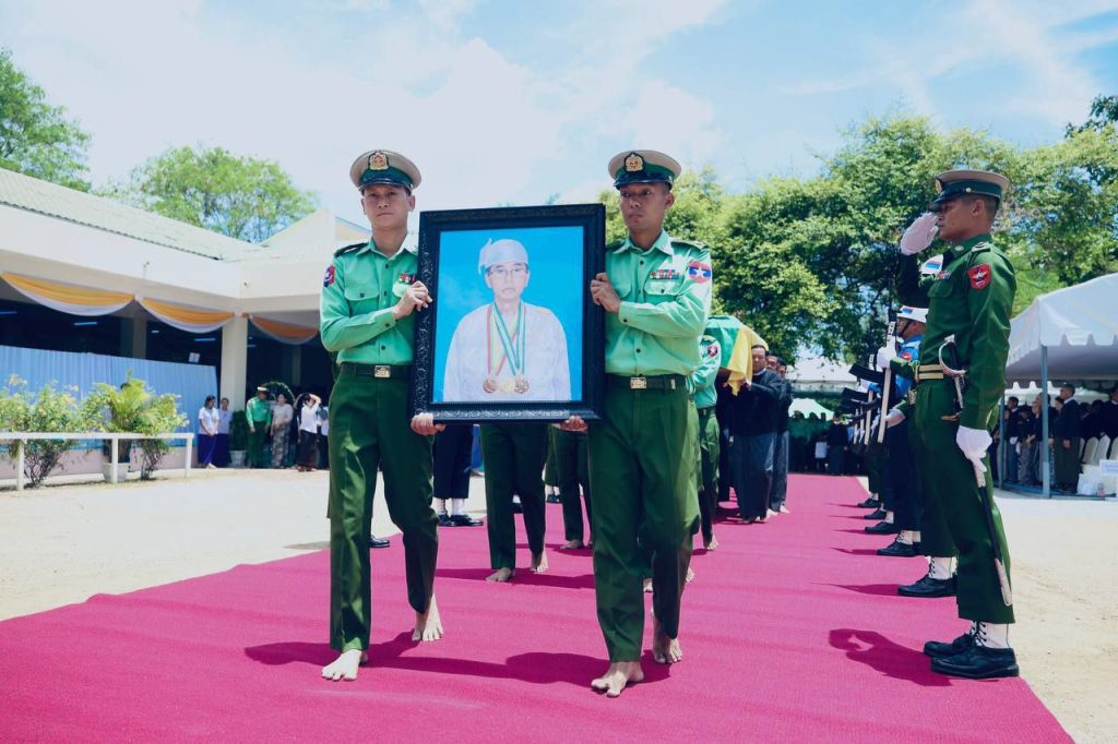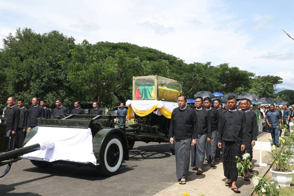 ပြည်ထောင်စုသမ္မတမြန်မာနိုင်ငံတော်၊ ယာယီသမ္မတဦးမြင့်ဆွေ၏ နိုင်ငံတော် ဈာပနအခမ်းအနားအား ယနေ့ နေ့လယ်ပိုင်းတွင် နေပြည်တော်၊ တပ်မတော်ဆေးရုံကြီးရှိ ငြိမ်းအေးဇရပ်နှင့် တပ်မတော်စစ်သင်္ချိုင်း(နေပြည်တော်) တို့၌ ကျင်းပပြုလုပ်ရာ နိုင်ငံတော်လုံခြုံရေးနှင့် အေးချမ်းသာယာရေးကော်မရှင်ဥက္ကဋ္ဌ တပ်မတော်ကာကွယ်ရေးဦးစီးချုပ် ဗိုလ်ချုပ်မှူးကြီး မင်းအောင်လှိုင်နှင့် ဇနီး ဒေါ်ကြူကြူလှတို့ တက်ရောက်ခဲ့သည်။