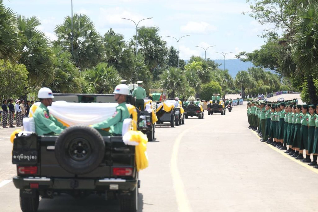 ယင်းနောက် ယာယီသမ္မတဦးမြင့်ဆွေ၏ ရုပ်ကလာပ်တင်ဆောင်ထားသည့် အမြောက်ယာဉ်နှင့် နိုင်ငံတော်ဈာပနယာဉ်တန်းသည် နေပြည်တော် တပ်မတော်ဆေးရုံကြီးရှိ ငြိမ်းအေးဇရပ်မှ တပ်မတော်စစ်သင်္ချိုင်း(နေပြည်တော်)သို့ ပုဗ္ဗသီရိမြို့ပတ်လမ်းအတိုင်း ထွက်ခွခဲ့ရာ မောင်းနှင်လာရာ လမ်းတစ်လျှောက်၌ တပ်မတော် (ကြည်း၊ ရေ၊ လေ) မှ တပ်မတော်သားများနှင့် မိသားစုဝင်များ၊ ဌာနဆိုင်ရာဝန်ထမ်းများနှင့် ပြည်သူလူထုများက ဝမ်းနည်းခြင်းအထိမ်းအမှတ်ဖြင့် ဂါရဝပြုဦးညွှတ်နှုတ်ဆက်ကြသည်။