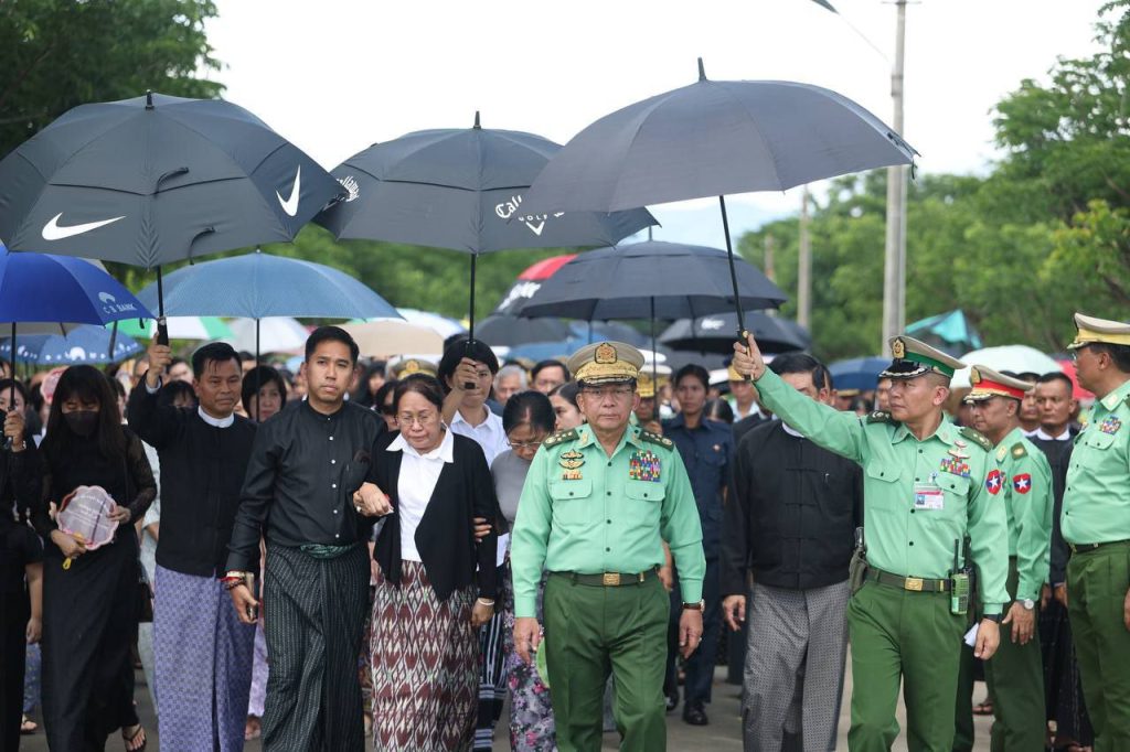 ထို့နောက် ယာယီသမ္မတ ဦးမြင့်ဆွေ၏ဇနီး ဒေါ်ခင်သက်ဌေး နှင့်မိသားစုများ၊ ဗိုလ်ချုပ်မှူးကြီးမင်းအောင်လှိုင်နှင့်ဇနီးနှင့် တက်ရောက်လာကြသူများသည် နိုင်ငံတော်သံဃ မဟာနာယကအဖွဲ့ အကျိုးတော်ဆောင် မစိုးရိမ်တိုက်သစ်ဆရာတော်ထံမှ သံဝေဂ ကထာ တရားနာကြား၍ ရေစက်သွန်းချ အမျှပေးဝေကြသည်။