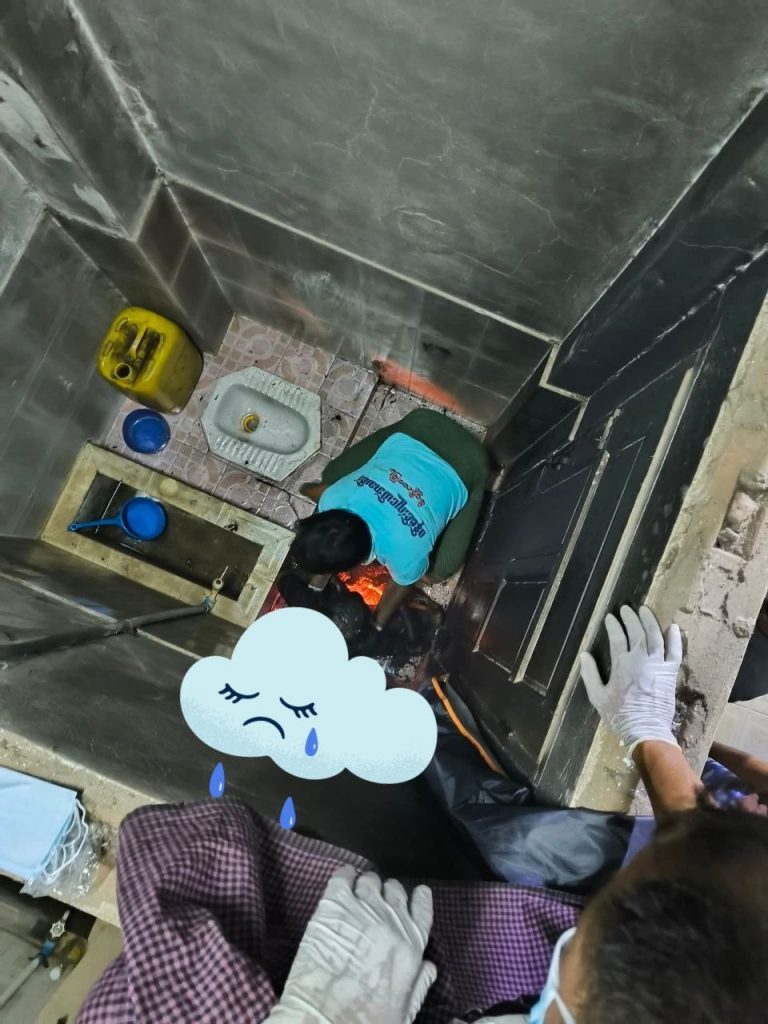 “ရေချိုးခန်း တံခါးရှေ့ အလောင်းက ပိတ်နေတာ လှေခါးထောင်တက် အောက်ဆင်း ဂျက်ဖြုတ် အဲ့ဒီလို ဆောင်ရွက်ဖို့ကလည်း မီးက မီးခိုးထွက်တာအကင်းမသေသေးဘူး။ ဆရာဆရာမတွေလည်း ကြောက်လန့်သွားကြတယ်။ ဖြစ်ရပ်ကြောင့်” လို့ ရဲတပ်ဖွဲ့နဲ့ နီးစပ်သူတစ်ဦးထံကနေ သိရပါတယ်။