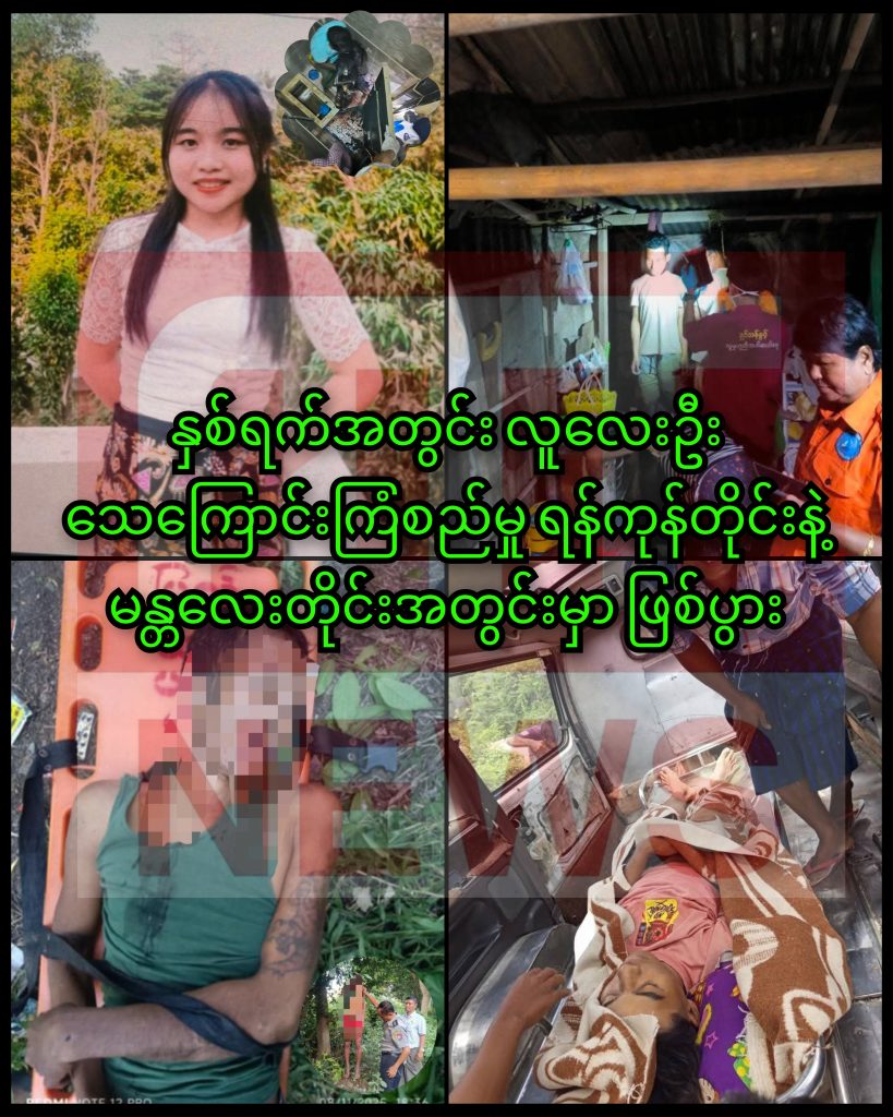 အလားတူပဲ မိတ္ထီလာမှာ အသက်နှစ်ဆယ်ကျော် သူနာပြုသင်တန်းကျောင်းသူတစ်ဦး ဒီနေ့မနက်ပိုင်းကပဲ ကိုယ့်ကိုယ်ကိုယ် ဒီဇယ်လောင်း မီးရှို့စီရင်မှု ဖြစ်ပွားခဲ့ပြီး မနေ့က ဩဂုတ် ၁၁ ရက် ညဦးပိုင်းကလည်း လုပ်ကိုင်နေတဲ့အလုပ်က လူလျှော့ချလို့ အလုပ်လက်မဲ့ဖြစ်နေတဲ့ အမျိုးသားတစ်ဦး ကိုယ့်ကိုယ်ကိုယ် ကြိုးဆွဲချစီရင်မှု ရန်ကုန်မြို့ ဒဂုံ မြို့သစ်တောင်ပိုင်းမြို့နယ်က ကျူးကျော်ရပ်ကွက်တစ်ခုမှာ ဖြစ်ပွားခဲ့ပြန်ပါတယ်။