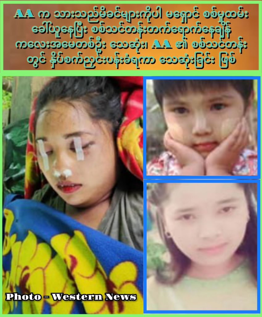 ပုံစာ။ AA ၏ စစ်သင်တန်းတွင် သေဆုံးသူ မတင်ချေနှင့် သမီးငယ်၏ ပုံရိပ် (Photo – Western News)
