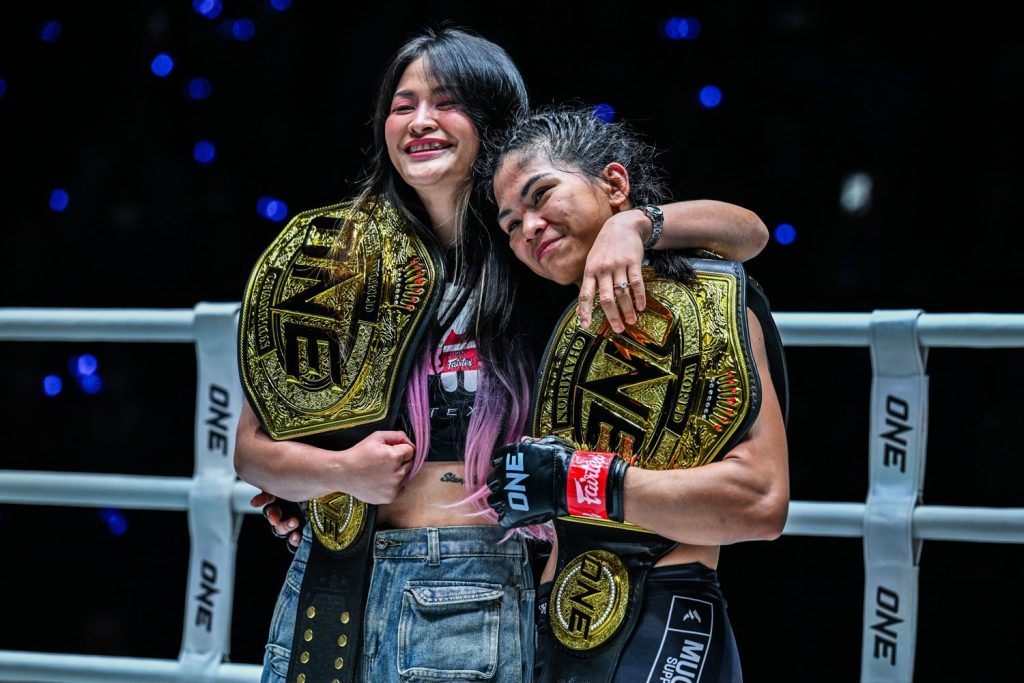 Stamp ရရှိခဲ့တဲ့ ခါးပတ်တွေက ONE Women’s Atomweight Kickboxing World Champion, ONE Women’s Atomweight Muay Thai World Champion နဲ့ ONE Women’s Atomweight MMA World Champion ဆုတွေဖြစ်ပြီး သူမဟာ ONE Championship ရဲ့ ပြိုင်ပွဲ ၃ မျိုးစလုံး (ကစ်ဘောက်ဆင်၊ ထိုင်းလက်ဝှေ့နဲ့ MMA) မှာ ချန်ပီယံဆုတွေ ရယူနိုင်ခဲ့တဲ့ ပထမဆုံး ဖိုက်တာလည်း ဖြစ်ပါတယ်။