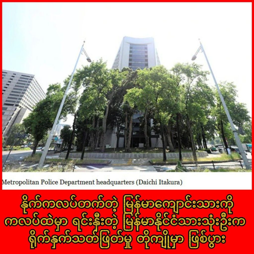 တိုကျိုမြို့၊ ရှင်ဂျုကု (Shinjuku) ခရိုင်ရှိ နိုက်ကလပ်တစ်ခုအပြင်ဘက်တွင် မြန်မာနိုင်ငံသားအချင်းချင်း သတ်ဖြတ်မှုသံသယဖြင့် မြန်မာအမျိုးသားသုံးဦးကို ဇူလိုင်လအတွင်းက ဖမ်းဆီးခဲ့ကြောင်း မြို့တော်ရဲဌာနက ယနေ့ သြဂုတ်လ ၁၈ ရက်တွင် ထုတ်ပြန် ပြောကြားခဲ့သည်။