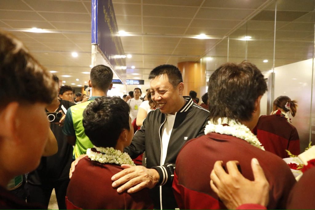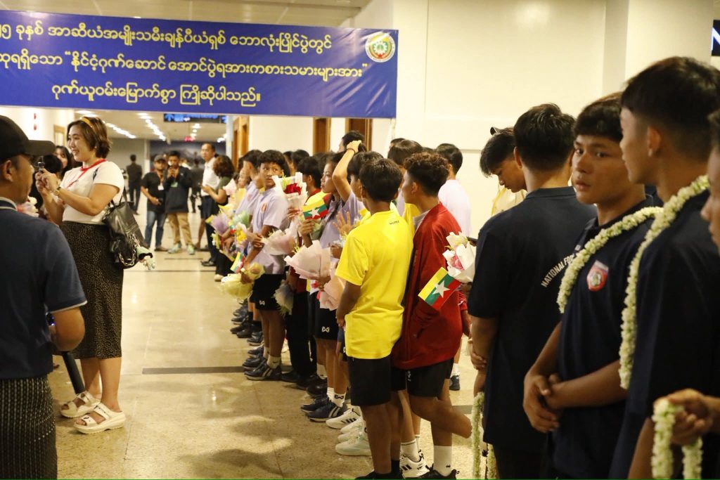 ဗီယက်နမ်နိုင်ငံမှာကျင်းပခဲ့တဲ့ ၂၀၂၅ အာဆီယံ အမျိုးသမီး ချန်ပီယံရှစ် AFF MSIG Serenity Cup 2025 ဘောလုံးပြိုင်ပွဲမှာ ငွေတံဆိပ် ဆွတ်ခူးရရှိခဲ့တဲ့ မြန်မာအမျိုးသမီးလက်ရွေးစင်အသင်းဟာ ဒီနေ့မနက်အစောပိုင်းမှာ အမိမြေဆီ ပြန်လည်ရောက်ရှိလာခဲ့ပြီး အားကစားနှင့်လူငယ်ရေးရာဝန်ကြီးဌာန၊ မြန်မာနိုင်ငံဘောလုံးအဖွဲ့ချုပ်ဥက္ကဋ္ဌ ဦးဇော်ဇော်အပါအဝင် တာဝန်ရှိသူတွေနဲ့ ပြည်သူတွေက လှိုက်လှဲဝမ်းမြောက်စွာ ခမ်းခမ်းနားနား ဂုဏ်ပြု ကြိုဆိုခဲ့ပါတယ်။