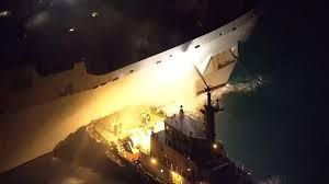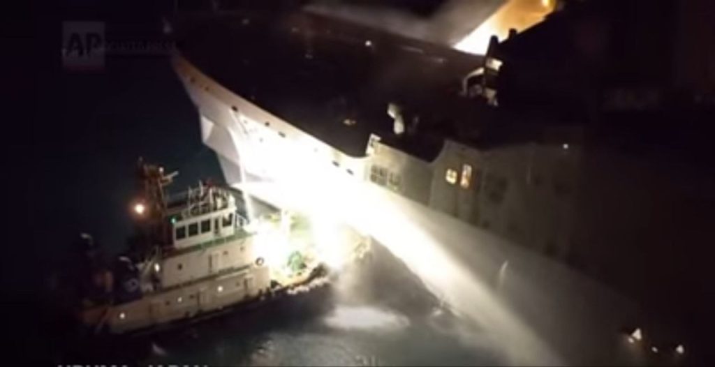 USS New Orleans စစ်သင်္ဘောပေါ်တွင် မီးက ဩဂုတ်လ ၂၀ ရက် ဒေသစံတော်ချိန် ညနေ ၄.နာရီတွင် စတင်လောင်ကျွမ်းခဲ့ပြီး ၆၈၄ ပေရှည်သော ကုန်းရေနှစ်သွယ်သွားစစ်သင်္ဘော White Beach ရေတပ်အဆောက်အအုံအနီး ကျောက်ချထားစဉ် မီးလောင်ကျွမ်းမှု စတင်ဖြစ်ပွားခြင်းဟု သိရသည်။