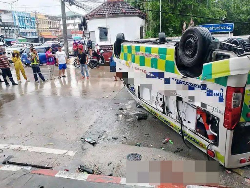ထိုင်းနိုင်ငံ၊ ရယောင်းပြည်နယ်မှာရှိတဲ့ ဘန်ချန်းလမ်းဆုံမှာ ဖြစ်ပွားခဲ့တဲ့ ဒီ ယာဉ်တိုက်မှုဟာ အရေးပေါ်ကယ်ဆယ်ရေးယာဉ်ကို အရှိန်ပြင်းစွာမောင်းနှင်လာတဲ့ ကားတစ်စီးက ဝင်တိုက်ခဲ့ရာကစတင်ခဲ့တာပါ။