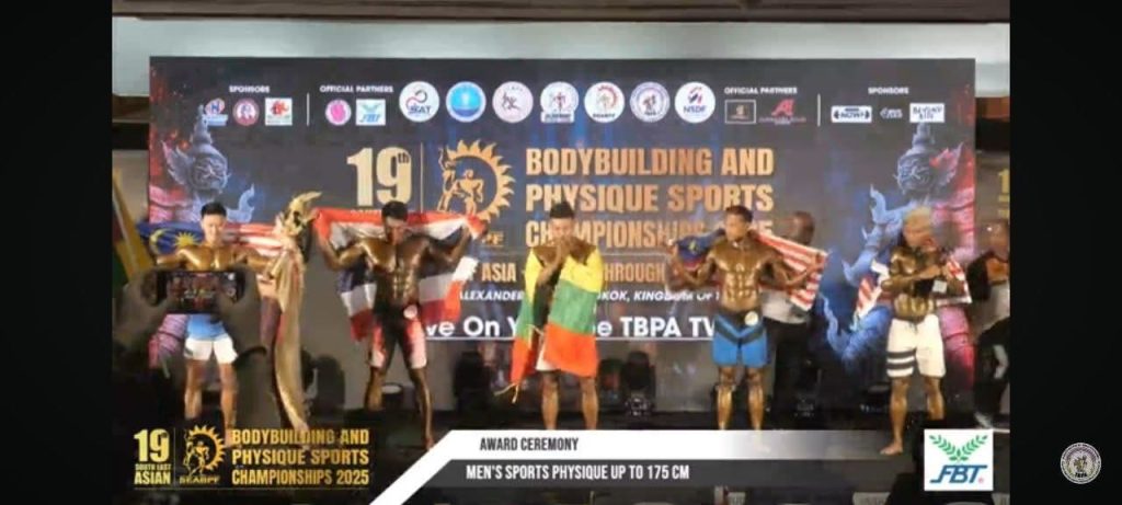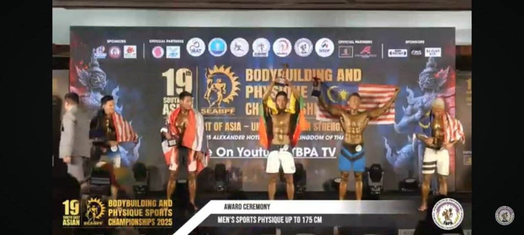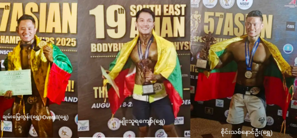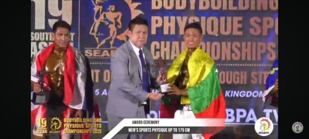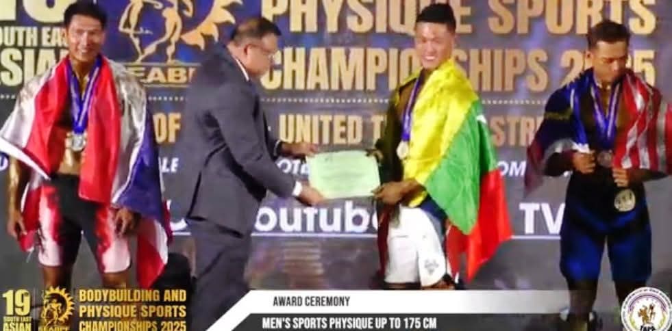 ဩဂုတ်လ ၁၈ ရက်မှ ၂၁ ရက်အထိ ကျင်းပသော (၁၉) ကြိမ်မြောက် အရှေ့တောင်အာရှ ကာယဗလနှင့် ကာယကြံ့ခိုင်မှုအားကစားပြိုင်ပွဲတွင် ချမ်းမြေ့ထွန်းသည် (၇၀)ကီလိုတန်း အမျိုးသားကာယဗလပြိုင်ပွဲ၌ ရွှေတံဆိပ် ဆုကိုလည်းကောင်း၊ စိုင်းသက်နောင်ဦးသည် (၁၇၅)စင်တီမီတာ ကိုယ်ခန္ဓာအလှ အမျိုးသားကာယကြံ့ခိုင်မှုပြိုင်ပွဲတွင် ရွှေတံဆိပ်ဆုကိုလည်းကောင်း၊ မျိုးသူရကျော်သည် (၁၇၅) စင်တီမီတာအထက် ကိုယ်ခန္ဓာအလှ အမျိုးသားကာယကြံ့ခိုင်မှုပြိုင်ပွဲတွင် ရွှေတံဆိပ်ဆုကိုလည်းကောင်း၊ ဆုမွန်လှိုင်သည် (၁၆၀) စင်တီမီတာအထိ ကိုယ်ခန္ဓာအချိုးအစားအလှ အမျိုးသမီးကာယကြံ့ခိုင်မှုပြိုင်ပွဲတွင် ငွေတံဆိပ်ဆုကိုလည်းကောင်း၊ ဇူးဇူးသန့်သည် (၁၇၀) စင်တီမီတာအထိ ကိုယ်ခန္ဓာအချိုးအစားအလှ အမျိုးသမီးကာယကြံ့ခိုင်မှုပြိုင်ပွဲတွင် ငွေတံဆိပ်ဆုကိုလည်းကောင်း၊ မောင်မောင်မြင့်သည် (၇၀)ကီလိုတန်းအမျိုးသားကာယဗလပြိုင်ပွဲတွင် ကြေးတံဆိပ်ဆုကိုလည်းကောင်း၊ သန်းဇော်ထိုက်သည် (၁၆၇) စင်တီမီတာအထိ အားကစားသမားဆန်သောအမျိုးသားကာယကြံ့ခိုင်မှုပြိုင်ပွဲတွင် ကြေးတံဆိပ်ဆုကိုလည်းကောင်း၊ လင်းလင်းစိုးသည် (၁၆၅) စင်တီမီတာအထိကိုယ်ခန္ဓာအချိုးအစားအလှ အမျိုးသမီးကာယကြံ့ခိုင်မှုပြိုင်ပွဲတွင် ကြေးတံဆိပ် ဆုကိုလည်းကောင်းအသီးသီးဆွတ်ခူးရရှိခဲ့ကြသဖြင့် မြန်မာအားကစားအဖွဲ့သည် ရွှေတံဆိပ် ၃ ခု၊ ငွေတံဆိပ် ၂ ခုနှင့် ကြေးတံဆိပ် ၃ ခု အပါအဝင် စုစုပေါင်းဆုတံဆိပ် ၉ ခုရရှိခဲ့သည်။