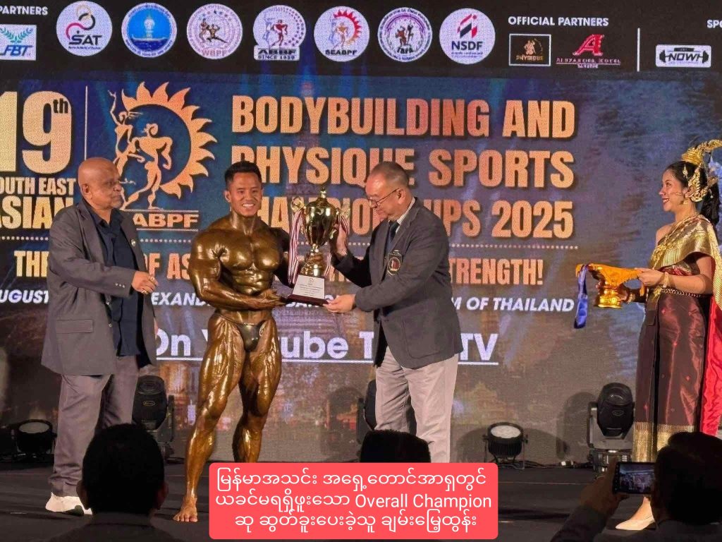 ၂၀၂၅ ခုနှစ်၊ ဩဂုတ်လ ၁၈ ရက်မှ ၂၅ ရက်အထိ ထိုင်းနိုင်ငံ၊ ဗန်ကောက်မြို့တွင် ကျင်းပပြုလုပ်သည့် (၁၉)ကြိမ်မြောက် အရှေ့တောင်အာရှကာယဗလနှင့် ကာယကြံ့ခိုင်မှုအားကစားပြိုင်ပွဲနှင့် (၅၇)ကြိမ်မြောက် အာရှကာယဗလနှင့် ကာယကြံ့ခိုင်မှုပြိုင်ပွဲသို့ မြန်မာနိုင်ငံကာယဗလနှင့်ကာယကြံ့ခိုင်မှုအားကစားအဖွဲ့ချုပ် ဥက္ကဋ္ဌ ဒုတိယမြို့တော်ဝန် ဦးညီညီမှ အဖွဲ့ခေါင်းဆောင်အဖြစ်ဦးဆောင်လျက်အုပ်ချုပ်သူ ၁ ဦး၊ နည်းပြ ၃ ဦး၊ ဒိုင်လူကြီး ၂ ဦးနှင့် အားကစားသမား ၂၀ ဦးစုစုပေါင်းအားကစားအဖွဲ့ဝင် ၂၆ ဦးဖြင့် သွားရောက်ယှဉ်ပြိုင်လျက်ရှိသည်။