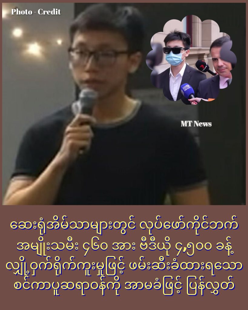 ဩစတြေးလျနိုင်ငံ၊ မဲလ်ဘုန်းမြို့ရှိ ဆေးရုံအိမ်သာများတွင် လုပ်ဖော်ကိုင်ဘက် ဆရာဝန်အမျိုးသမီးများနှင့် အခြားအမျိုးသမီးရာပေါင်းများစွာကို လျှို့ဝှက်ဗီဒီယိုရိုက်ကူးမှုဖြင့် စွဲချက်တင်ခံထားရသော စင်ကာပူမှ ဆေးပညာသင်ဆရာဝန်တစ်ဦးကို ယခု သောကြာနေ့တွင် အာမခံဖြင့် ပြန်လွှတ်ပေးလိုက်ပြီဖြစ်သည်။