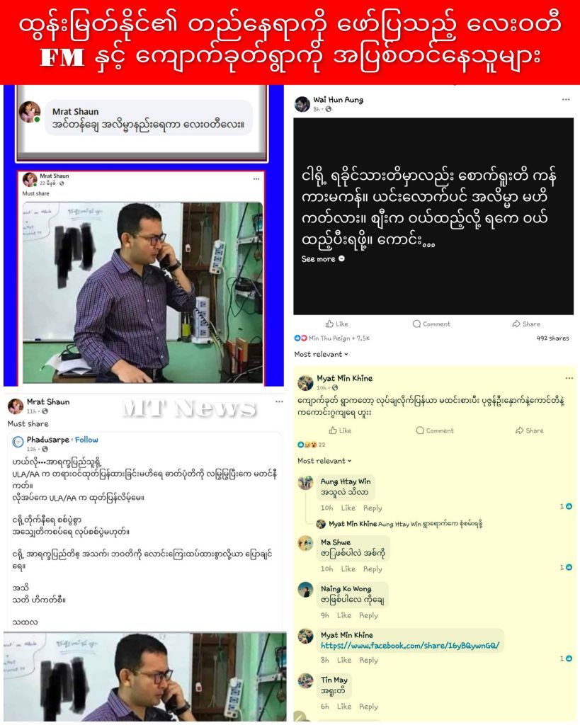 ဒီလို ထွန်းမြတ်နိုင်ရောက်နေတဲ့နေရာကို ခန့်မှန်းနိုင်တဲ့ပုံတွေ Lay Waddy FM က ဖော်ပြအပြီး ထွန်းမြတ်နိုင်ရဲ့ ဇနီးဆိုသူ Mrat Shaun အကောင့်သုံးစွဲသူက “အင်တန်ချေ အလိမ္မာနည်းရေကာ လေးဝတီလေး”လို့ မှတ်ချက်ပြုခဲ့သလို ULA/AA မထုတ်ပြန်တဲ့ပုံတွေ မတင်ကြဖို့ ပို့စ်ကို Share ခဲ့တာကြောင့် Lay Waddy FM က ထွန်းမြတ်နိုင်ပုံတွေ ပြန်ဖြုတ်သွားခဲ့ကာ ထွန်းမြတ်နိုင်ကိုယ်တိုင် ဆင်းလာတွေ့တာကို မိန်းမနဲ့ကလေး ၄၀ လောက်ပဲရှိလို့ “ရခိုင်လူငယ်တွေက စစ်ပွဲမှာကုန်ပြီ။ ဒီတစ်ခါ မိန်းမတွေနဲ့ ကလေးတွေအလှည့်” လို့လှောင်ပြောင်နေကြတာလည်း တွေ့ရပါတယ်။