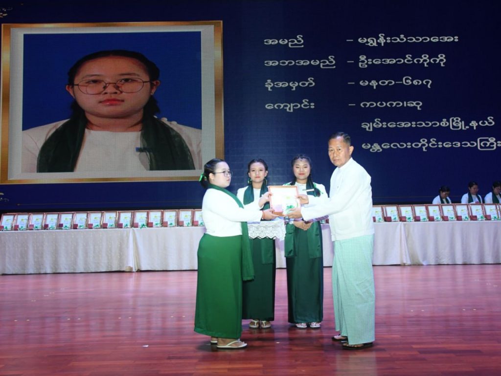 ၂၀၂၅ ခုနှစ်၊ တက္ကသိုလ်ဝင်စာမေးပွဲတွင် ဘာသာစုံဂုဏ်ထူးနှင့် ဘာသာတွဲအလိုက် အမှတ်အများဆုံးဖြင့် ထူးချွန်စွာအောင်မြင်ခဲ့ကြသည့် ကျောင်းသား၊ ကျောင်းသူများအား ဂုဏ်ပြုဆုချီးမြှင့်ပွဲအခမ်းအနားကို ယမန်နေ့နံနက်ပိုင်းတွင် နေပြည်တော်ရှိဇေယျာသီရိဗိမာန်၌ကျင်းပရာ နိုင်ငံတော်လုံခြုံရေးနှင့် အေးချမ်းသာယာရေးကော်မရှင်ဥက္ကဋ္ဌ ဗိုလ်ချုပ်မှူးကြီးမင်းအောင်လှိုင်ကိုယ်စား ကော်မရှင်ဒုတိယဥက္ကဋ္ဌ ဒုတိယဗိုလ်ချုပ်မှူးကြီးစိုးဝင်း တက်ရောက်၍ ဂုဏ်ပြုဆုများပေးအပ်ချီးမြှင့်သည်။