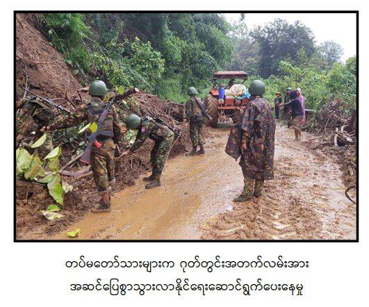 ထိုသို့ အကြမ်းဖက်သမားများ လုပ်ဆောင်ခဲ့သည့် လမ်းကြောင်းတစ်လျှောက်ရှိ အတားအဆီးနေရာများနှင့် လမ်းတံတားများအား တပ်မတော်စစ်ကြောင်းများက လူအင်အားနှင့် စက်ယန္တရားများအသုံးပြု၍ ဖယ်ရှားရှင်းလင်းခြင်းများနှင့် ဂုတ်တွင်း တံတားအား အများပြည်သူပြန်လည်အသုံးပြုနိုင်ရေးနှင့် ပို့ဆောင်ဆက်သွယ်ရေး အဆင်ပြေချောမွေ့စေရေးအတွက် တပ်မတော်မှ စစ်မြေပြင်အင်ဂျင်နီယာတပ်ဖွဲ့များ က ယာယီသံဘောင်ဘေလီတံတားထိုးခြင်းလုပ်ငန်းများကို ဆောင်ရွက်လျက်ရှိပြီး လိုအပ်သည့် နယ်မြေရှင်းလင်းရေးလုပ်ငန်းများကို ဆက်လက်ဆောင်ရွက်လျက်ရှိကြောင်း သတင်းရရှိသည်။