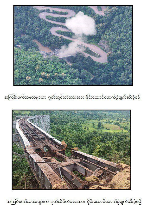TNLA အကြမ်းဖက်အဖွဲ့နှင့် PDF အမည်ခံအကြမ်းဖက်အဖွဲ့များအနေဖြင့် တပ်မတော်စစ်ကြောင်းများနှင့် တိုက်ပွဲများဖြစ်ပွားစဉ်ကာလအတွင်း ၂၀၂၅ ခုနှစ်၊ ဇူလိုင် ၁၃ ရက်တွင် ရှမ်းပြည်နယ်(မြောက်ပိုင်း)၊ ကျောက်မဲခရိုင်၊ နောင်ချိုမြို့နယ် အပိုင်း မန္တလေး-လားရှိုး-မူဆယ် ပြည်ထောင်စုလမ်းမကြီး မိုင်တိုင်အမှတ် (၇၈/၂-၇၈/၃)အတွင်း တည်ရှိသည့် တံတားအမှတ်(၉/၈၄)၊ သံကူကွန်ကရစ်တံတား အားလည်းကောင်း၊ ၂၀၂၅ ခုနှစ်၊ ဇူလိုင် ၁၅ ရက်တွင် ဂုတ်တွင်းတံတား(အသစ်) နှင့်(အဟောင်း)နေရာနှစ်ခုကို ဒုတိယအကြိမ်မြောက်အဖြစ်လည်းကောင်း၊ ၂၀၂၅ ခုနှစ်၊ ဩဂုတ် ၂၄ ရက်တွင် မြန်မာနိုင်ငံ၏ အထင်ကရအမှတ်အသားနှင့် ကမ္ဘာကျော် ရှေးဟောင်းတံတားတစ်စင်းဖြစ်သည့် ဂုတ်ထိပ်တံတား၏ ကျောက်မဲမြို့ဘက်အခြမ်းရှိတံတားတိုင်အမှတ်(P – 16)နှင့် ကမ်းကပ်ခုံ (AB – 2)နေရာတို့အကြား ပေ ၆၀ အရှည်ရှိ တံတား သံပေါင်နေရာနှင့် တံတား၏ ကမ်းကပ်ခုံ(AB – 2)တို့အား လည်း ကောင်း အကြမ်းဖက်သမားများက ယုတ်မာရိုင်းစိုင်းစွာ မိုင်းထောင်ဖောက်ခွဲ ဖျက်ဆီးခဲ့ခြင်းနှင့် နောင်ချို-ကျောက်မဲ လမ်းကြောင်းတလျှောက်၌ လမ်းပန်းဆက်သွယ် ရေးများ အခက်အခဲဖြစ်စေရန်အတွက် အတားအဆီးများပြုလုပ်၍ လမ်းများ ပိတ်ဆို့ ထားခြင်း တို့ကို လုပ်ဆောင်ခဲ့ကြသည်။