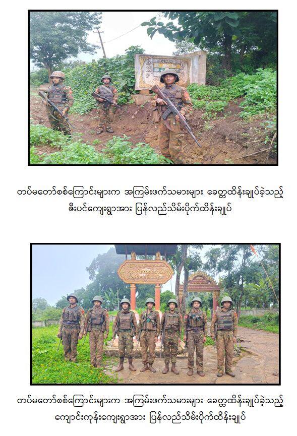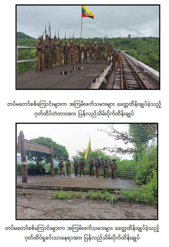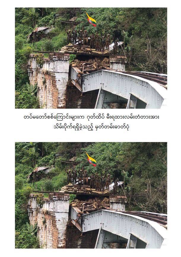TNLA နှင့် MDY PDF တို့ သိမ်းယူပြီးနောက် တပ်မတော်လာရောက် မတိုက်ခိုက်နိုင်အောင် ဖောက်ခွဲဖျက်ဆီး စခန်းချထားသည့် ဂုတ်တွင်းတံတားနှင့် ဂုတ်ထိပ်တံတားနေရာများကို တပ်မတော်စစ်ကြောင်းများက ပြန်လည်သိမ်းပိုက်နိုင်ခဲ့ကြောင်း ယနေ့ကြေညာလိုက်သည်။