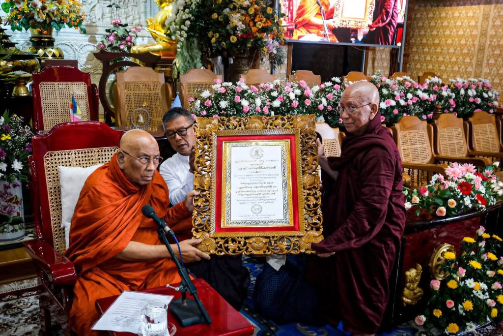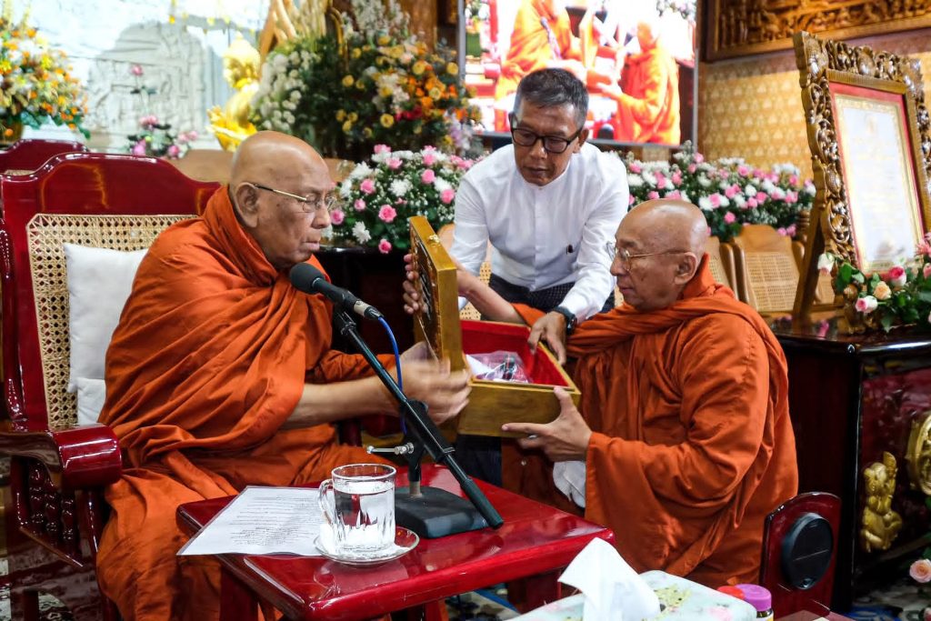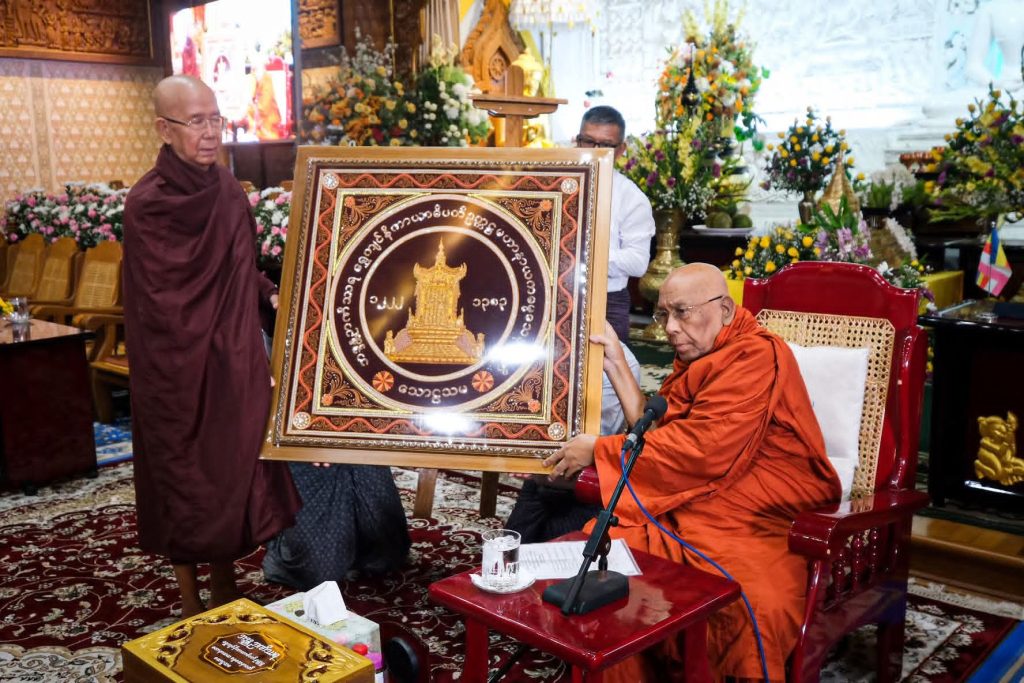 တို့သို့ ဆက်ကပ်ရာတွင် ဘွဲ့ပုံတော်လက်မှတ်ကို အကျိုးတော်ဆောင်ချုပ် ဝိဇ္ဇာလင်္ကာရဆရာတော်ကြီးက သီတဂူအဓိပတိဆရာတော်ကြီးကို ဆက်ကပ်ခဲ့ကာ သာသနာပိုင်အလံတော်ကို အကျိုးတော်ဆောင် အဝေရာရာမ ရန်ကင်းဆရာတော်ကြီးနှင့် သာသနာပိုင် ဘွဲ့တံဆိပ်တုံးကို အကျိုးတော်ဆောင် ကျောက်မဲဆရာတော်ကြီးက သီတဂူအဓိပတိဆရာတော်ကြီးကို ဆက်ကပ်ခဲ့သည်ဟု သိရသည်။