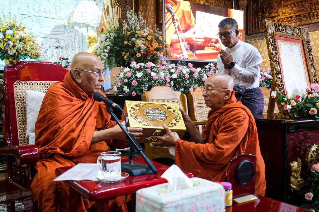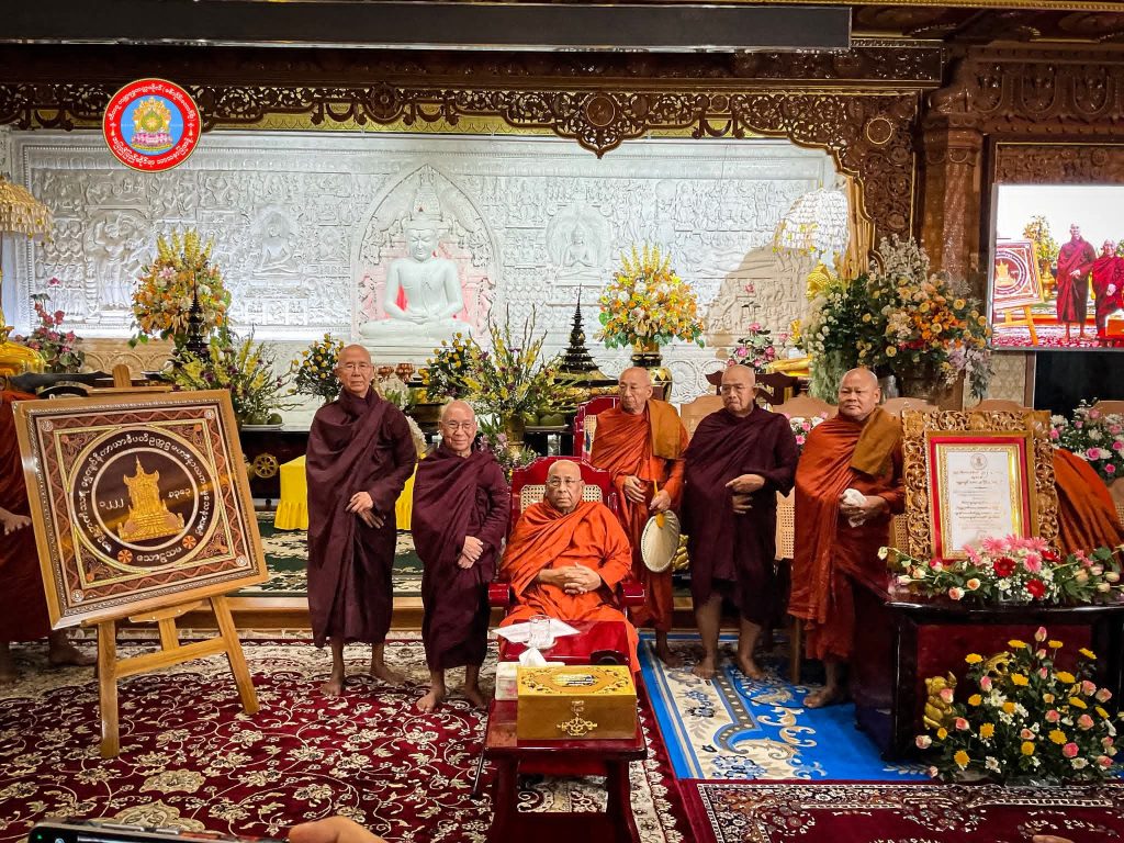 ဆရာတော်ဘုရားကြီးအား ကန်တော့ပြီးနောက် ရွှေကျင်သာသနာပိုင်ဘွဲ့တံဆိပ်တော် ဆက်ကပ်ခြင်းနှင့် စပ်လျဉ်း၍ အကျိုးတော်ဆောင် အဝေရာ ရာမရန်ကင်းဆရာတော်ကလျှောက်ထားခဲ့ကာ ရွှေကျင်နိကာယာဓိပတိဥက္ကဋ္ဌမဟာနာယက ဓမ္မသေနာပတိ သောဠသမရွှေကျင်သာသနာပိုင် စစ်ကိုင်းတောင်ရိုး သီတဂူဆရာတော်ဘုရားကြီးကို သာသနာပိုင် ဘွဲ့တံဆိပ်တော်၊ ဘွဲ့ပုံတော်လက်မှတ်၊ သာသနာပိုင်အလံတော်၊ ဘွဲ့တံဆိပ်တုံးများကို ဆက်ကပ်ခဲ့သည်။