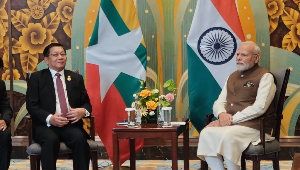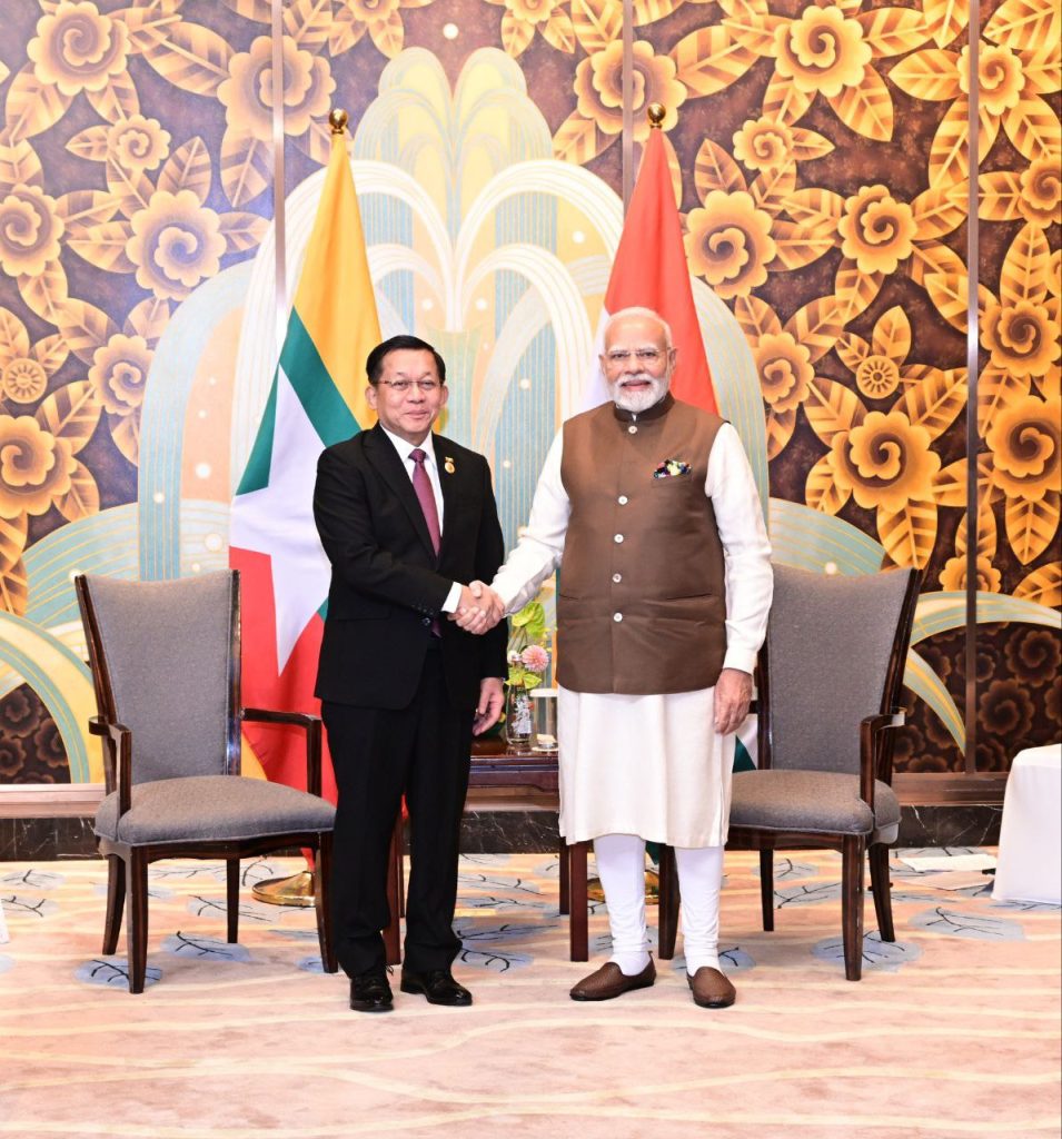 ဝန်ကြီးချုပ် နာရန္ဒြာ မိုဒီသည် မြန်မာနိုင်ငံ၏ ယာယီသမ္မတ ဗိုလ်ချုပ်မှူးကြီး မင်းအောင်လှိုင်နှင့် တနင်္ဂနွေနေ့က နှစ်နိုင်ငံဆွေးနွေးပွဲကျင်းပခဲ့သည်။ ခေါင်းဆောင်နှစ်ဦးသည် ယနေ့နောက်ပိုင်းတွင် စတင်မည့် SCO ထိပ်သီးအစည်းအဝေးမတိုင်မီ တွေ့ဆုံဆွေးနွေးခဲ့ကြခြင်းဖြစ်သည်။