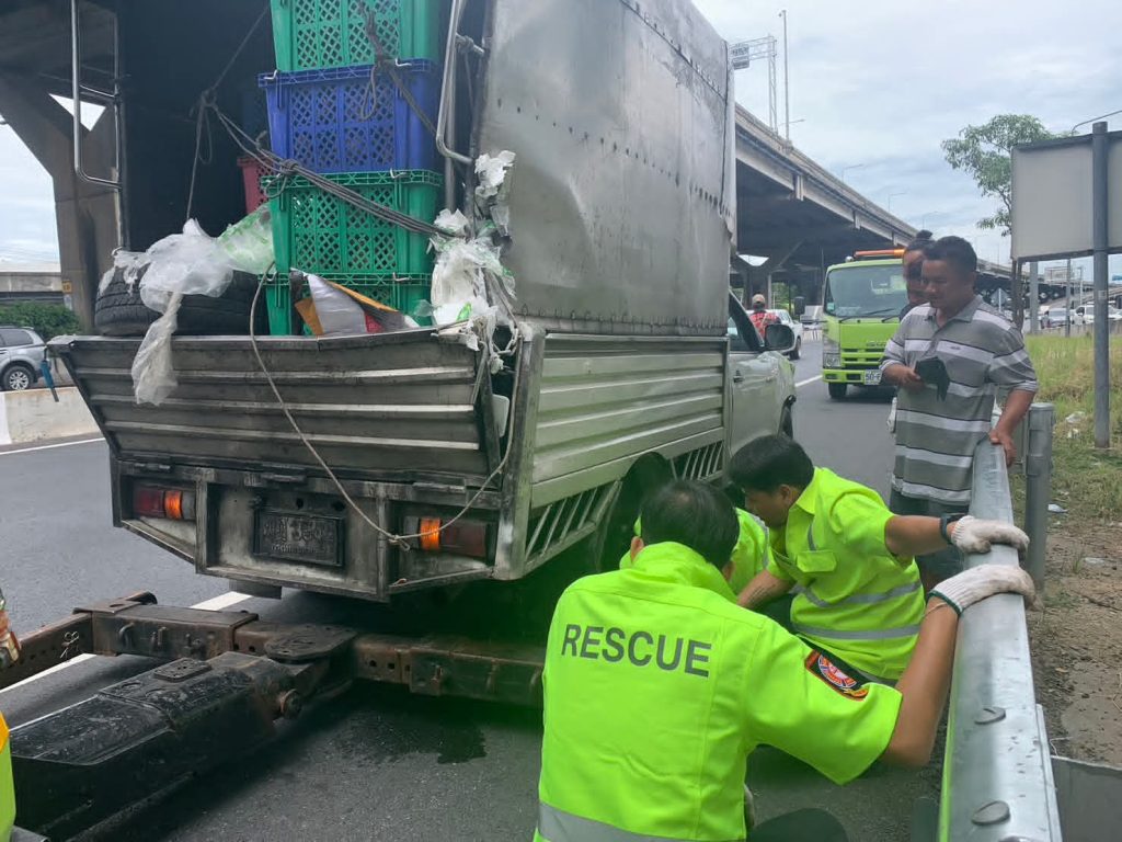 အဆိုပါ မတော်တဆမှုကြောင့် ငါးကွမ်းရှပ်များပါသော ဖာများ လမ်းမပေါ်တွင် ပြန့်ကျဲနေသည်ကိုလည်း တွေ့ရပြီး ရုပ်သံများအရ အရှိန်ဖြင့်မောင်းလာသော ထိုကားသည် Tollway အနီးမရောက်ခင် အရှိန်ဖြင့် တစ်ပတ်လည်ကာ လမ်းဘေးအတားအဆီးများ ဝင်တိုက်မိသည်ကိုလည်း တွေ့ရသည်။