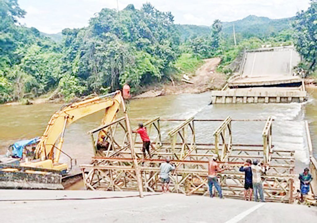 ထိုသို့ မိုင်းထောင်ဖောက်ခွဲဖျက်ဆီးခဲ့မှုကြောင့် ကုန်စည်စီးဆင်းမှုများ ရပ်တန့်ခဲ့ရပြီး အများပြည်သူများသွားလာရေး အခက်အခဲများဖြစ်ပေါ်ခဲ့ရသဖြင့် နိုင်ငံတော်အစိုးရက ဒေသခံပြည်သူများ၏ လမ်းပန်းဆက်သွယ်ရေးနှင့် ကုန်စည်စီးဆင်းမှုအဆင်ပြေချောမွေ့စေရေး ပြန်လည်ပြုပြင်ခြင်းလုပ်ငန်းများကိုဆောင်ရွက်ပေးလျက်ရှိရာ ကော့နွဲ့တံတားပြန်လည်ပြုပြင်ရေး တံတားအထူးအဖွဲ့မှ ဒုတိယညွှန်ကြားရေးမှူး ဦးဆောင်သည့် အင်ဂျင်နီယာ ၁ ဦးနှင့် လုပ်သား ၂၆ ဦးတို့သည် တံတားပြုပြင်ခြင်းလုပ်ငန်းများဆောင်ရွက်နေစဉ် ယနေ့မွန်းလွဲ ၁ နာရီ မိနစ် ၃၀ ခန့်တွင် KNU နှင့် PDF များက တံတား၏ အနောက်မြောက်ဘက် မီတာ ၃၆၀၀ ခန့်အကွာရှိ ပျားပင်ကျေးရွာနေရာနှင့် တံတား၏တောင်ဘက် မီတာ ၃၇၀၀ ခန့် အကွာရှိ မြို့ဟောင်းကျေးရွာနေရာတို့မှ Suicide Drone ၂ စင်းဖြင့် တံတားလုပ်ငန်းဆောင်ရွက်နေသူများအား တိုက်ခိုက်ခဲ့သဖြင့် တံတားလုပ်ငန်းများဆောင်ရွက်နေသည့် အမျိုးသား ၁ ဦး သေဆုံးကာ ၈ ဦး ထိခိုက်ဒဏ်ရာရရှိခဲ့ကြောင်း သိရှိရသည်။
