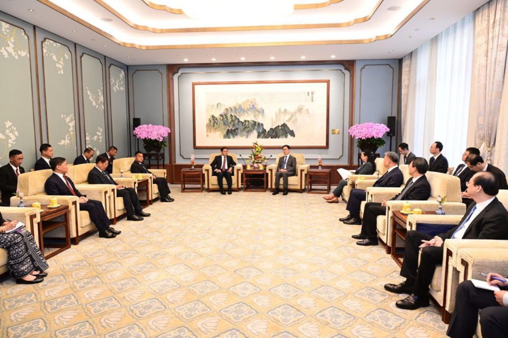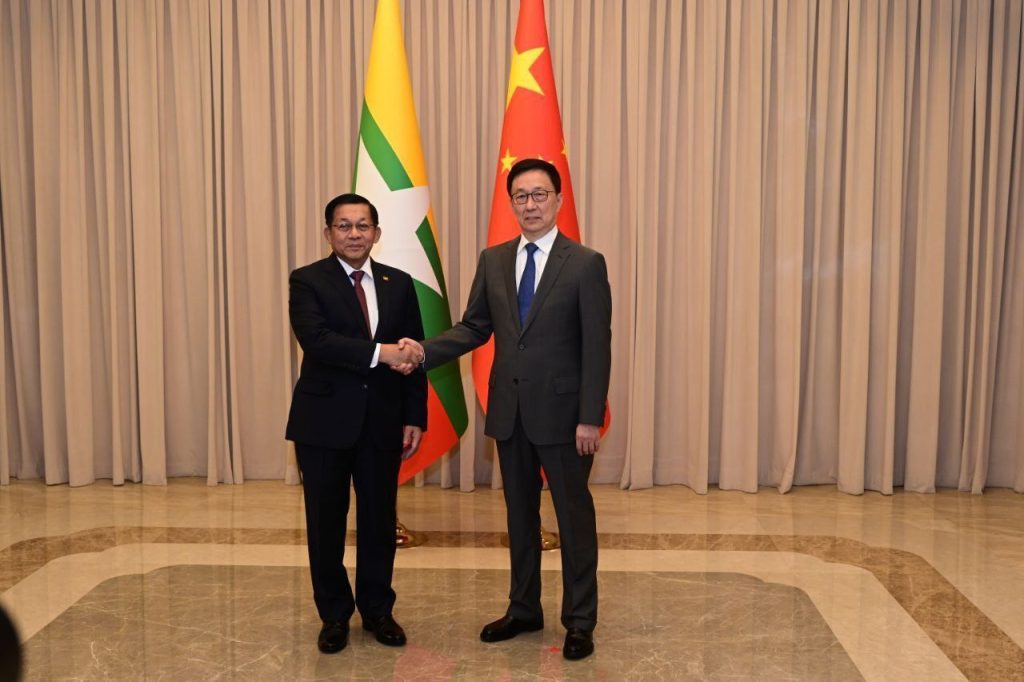 တရုတ်ပြည်သူ့သမ္မတနိုင်ငံ ပေကျင်းမြို့တွင် အလုပ်သဘောခရီး ရောက်ရှိနေသည့် ပြည်ထောင်စုသမ္မတမြန်မာနိုင်ငံတော် ယာယီသမ္မတ နိုင်ငံတော်လုံခြုံရေးနှင့် အေးချမ်းသာယာရေးကော်မရှင်ဥက္ကဋ္ဌ ဗိုလ်ချုပ်မှူးကြီး မင်းအောင်လှိုင်သည် ယနေ့ ဒေသစံတော်ချိန် နေလယ် ၁၂ နာရီတွင် ကျောက်ယွိထိုင်နိုင်ငံတော်ဧည့်ဂေဟာ၌ တရုတ်ပြည်သူ့သမ္မတနိုင်ငံ၊ ဒုတိယသမ္မတ H.E. Mr. Han Zheng နှင့် တွေ့ဆုံဆွေးနွေးခဲ့သည်။