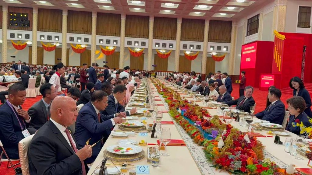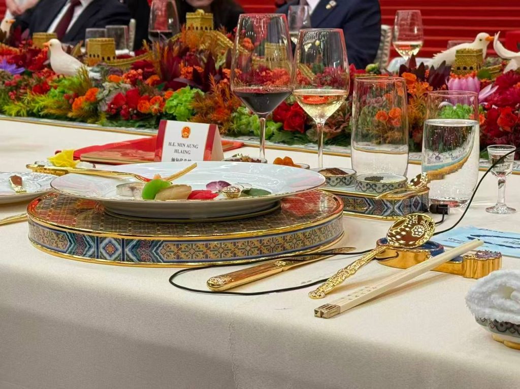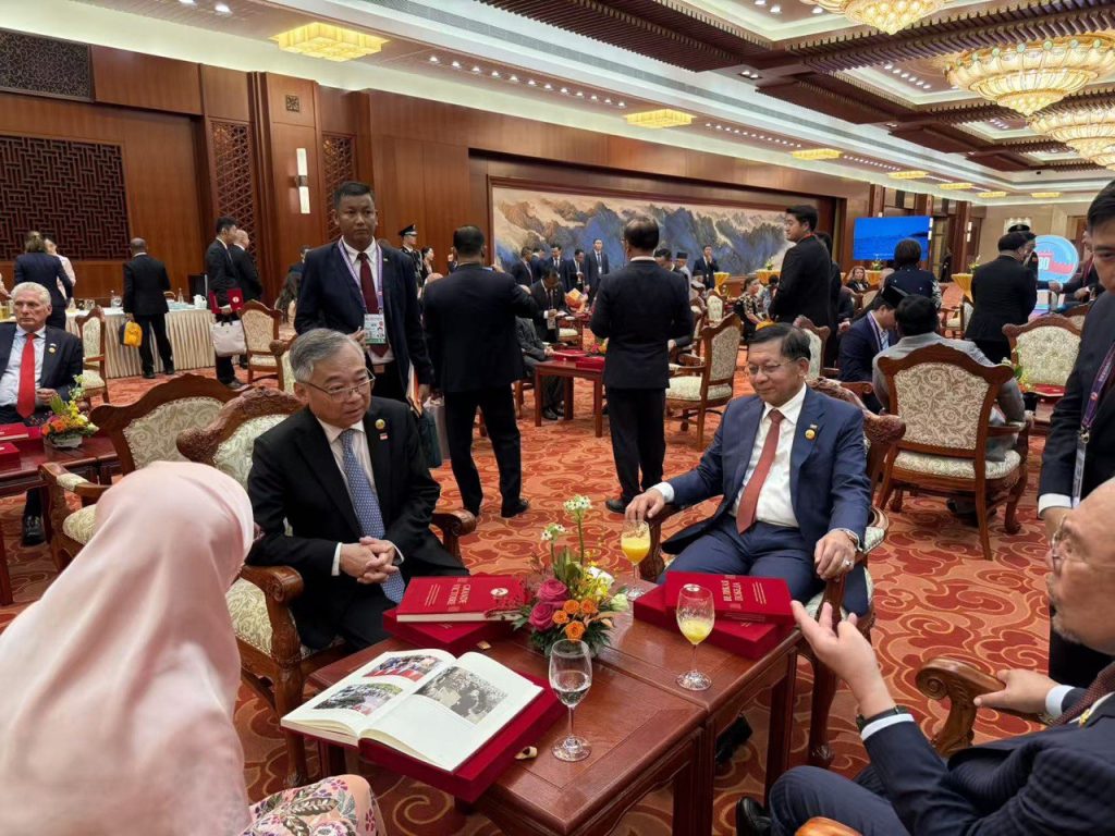 ယာယီသမ္မတ ဗိုလ်ချုပ်မှူးကြီးမင်းအောင်လှိုင် တရုတ်ပြည်သူများ၏ ဂျပန်ခုခံတော်လှန်ရေး စစ်ပွဲနှင့် ကမ္ဘာ့ဖက်ဆစ်ဆန့်ကျင်ရေးစစ်ပွဲ အောင်နိုင်ခြင်း နှစ်(၈၀)ပြည့် အထိမ်းအမှတ် စစ်ရေးပြအခမ်းအနား တက်ရောက်နေသည့် ပြည်ထောင်စုသမ္မတမြန်မာနိုင်ငံတော် ယာယီသမ္မတ နိုင်ငံတော်လုံခြုံရေးနှင့် အေးချမ်းသာယာရေးကော်မရှင် ဥက္ကဋ္ဌ ဗိုလ်ချုပ်မှူးကြီးမင်းအောင်လှိုင်သည် အဆိုပါအခမ်းအနား၏ နေ့လယ်စာစားပွဲနှင့် ဖျော်ဖြေပွဲအခမ်းအနားသို့ ပါဝင်တက်ရောက်လျက်ရှိသည်။
