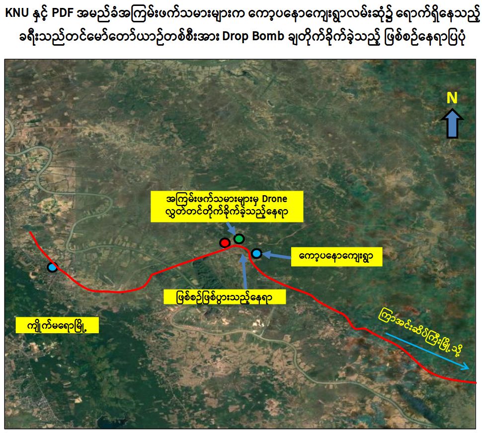 ဖြစ်စဉ်မှာ KNU နှင့် PDF များသည် ၎င်းတို့အပေါ် အကြောက်တရားလွှမ်းမိုးစေရန်အတွက် ကျိုက်မရောမြို့နယ်၊ ကော့ပနောကျေးရွာအား စက်တင်ဘာ ၂ ရက်နေ့ ညနေ ၅ နာရီခွဲခန့်တွင် Drone အသုံးပြု၍ Drop Bomb ချတိုက်ခိုက်ခဲ့သည်။