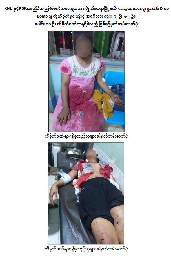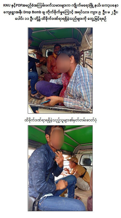 အကြမ်းဖက်သမားများအနေဖြင့် နိုင်ငံတော်တည်ငြိမ်ရေးနှင့် တရားဉပဒေစိုးမိုးရေးလုပ်ငန်းများကို အနှောင့်အယှက်ဖြစ်စေရန်၊ အရပ်သားပြည်သူများအား ကြောက်ရွံ့ထိတ်လန့်မှုများ ဖြစ်ပေါ်စေရန်နှင့် ခရီးသွားပြည်သူများ ထိခိုက်စေရန် ရည်ရွယ်၍ လမ်း၊ တံတားများအား ဖောက်ခွဲဖျက်ဆီးခြင်း၊ ဌာနဆိုင်ရာအဆောက်အဉီများနှင့် လူနေထိုင်ရာရပ်ကွက်၊ ကျေးရွာများအတွင်းသို့ ရှော့တိုက်ဒုံးများ၊ လက်နက်ကြီးများဖြင့် နှောင့်ယှက်ပစ်ခတ်တိုက်ခိုက်ခြင်း၊ စစ်ရေးနှင့်မသက်ဆိုင်သော အေးချမ်းစွာသွားလာလျက်ရှိသည့် ကုန်တင်ကားများ၊ ခရီးသည်တင်ယာဉ်များနှင့် အရပ်ယာဉ်များကိုလည်း နှောင့်ယှက်ပစ်ခတ်တိုက်ခိုက်ခြင်းများ၊ မိုင်းထောင်ဖောက်ခွဲခြင်းများ လုပ်ဆောင်လျက်ရှိရာ ယခုလည်း အကြမ်းဖက်လက်နက်ကိုင်အဖြစ် သတ်မှတ်ထားသည့် KNU နှင့် PDF က ကျိုက်မရောမြို့နယ်၊ ကော့ပနောကျေးရွာအနီး ခရီးသွားယာဥ်တစ်စီးကို Drop Bomb ချ တိုက်ခိုက်သဖြင့် အပြစ်မဲ့အရပ်သားပြည်သူ ၁၁ ဦး ထိခိုက်ဒဏ်ရာရရှိခဲ့သည်။
