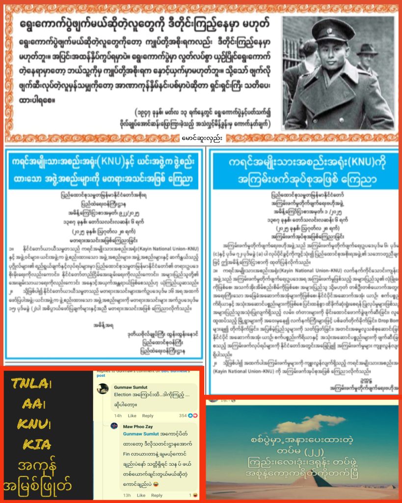 ကျောင်းသားလူငယ်များစွာကို ဖျားယောင်းလက်ခံပြီး PDF တွေ မွေးထုတ်ခဲ့သလို နိုင်ငံအတွင်း တိုက်ခိုက်ဖျက်ဆီးမှုများစွာနဲ့ အကြမ်းဖက် သတ်ဖြတ်မှုတွေ၊ နယ်မြေလုယက်မှုတွေ ကျူးလွန်နေတဲ့အပြင် ရွေးကောက်ပွဲကို လက်မခံဘူးလို့ မကြာခဏ ထုတ်ပြန်ကြေညာနေတဲ့ ကရင်လက်နက်ကိုင် KNU ကို အကြမ်းဖက်အဖွဲ့အစည်းအဖြစ် ကြေညာလိုက်တဲ့အပြင် KNU နဲ့ ဆက်စပ် အဖွဲ့အစည်းတွေကို မတရားအသင်းအဖြစ်ပါ ဩဂုတ် ၂၈ ရက်မှာ ကြေညာလိုက်တာ တွေ့ရပါတယ်။