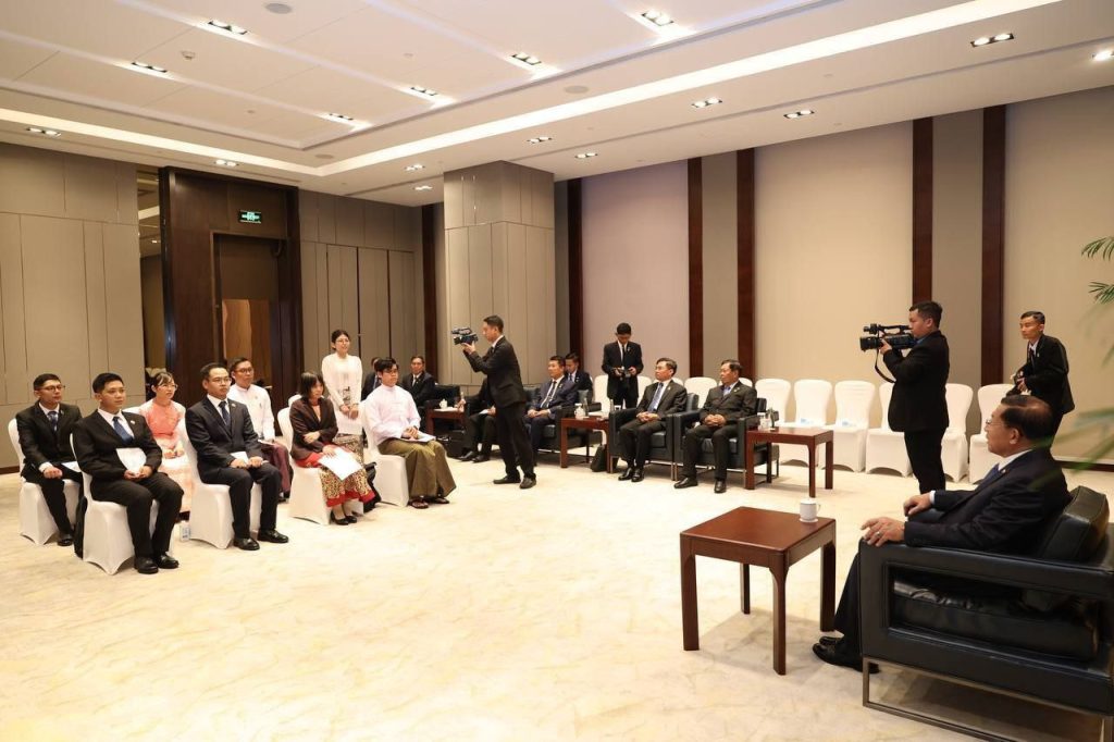 တရုတ်ပြည်သူ့သမ္မတနိုင်ငံတွင် သင်တန်းများလာရောက် တက်ရောက်၍ ပညာသင်ကြားခြင်းဖြစ်သည့်အတွက် နိုင်ငံအတွက်များစွာ အကျိုး ဖြစ်ထွန်းစေကြောင်း၊ မြန်မာနိုင်ငံနှင့် တရုတ်နိုင်ငံတို့၏ ဆက်ဆံရေးသည် လက်ရှိအချိန်တွင် အကောင်းဆုံး အခြေအနေတွင်ရှိနေကြောင်း၊ မိမိအနေဖြင့် ရှန်ဟိုင်းပူးပေါင်း ဆောင်ရွက်မှုအဖွဲ့ ထိပ်သီးအစည်းအဝေး (Shanghai Cooperation Organisation SCO SUMMIT 2025 Plus) နှင့် တရုတ်ပြည်သူများ၏ ဂျပန်ခုခံတော်လှန်ရေးစစ်ပွဲနှင့် ကမ္ဘာ့ဖက်ဆစ်ဆန့်ကျင်ရေးစစ်ပွဲအောင်နိုင်ခြင်း နှစ်(၈၀)ပြည့် အထိမ်းအမှတ် စစ်ရေးပြအခမ်းအနားသို့ တက်ရောက်ခဲ့ကြောင်း၊ ရှန်ဟိုင်းပူးပေါင်းဆောင်ရွက်မှုအဖွဲ့သည် ကမ္ဘာကြီး၏ တည်ငြိမ်အေးချမ်းရေးနှင့် ဖွံ့ဖြိုးတိုးတက်မှုအတွက် အရေးပါသည့် အဖွဲ့အစည်းဖြစ်ပြီး မကြာမီအချိန်အတွင်း မြန်မာနိုင်ငံအနေဖြင့် SCO အဖွဲ့ဝင်ဖြစ်လာမည်ဟုယုံကြည်ကြောင်း ယာယီသမ္မတ ဗိုလ်ချုပ်မှူးကြီးမင်းအောင်လှိုင်က ပြောကြားသည်။