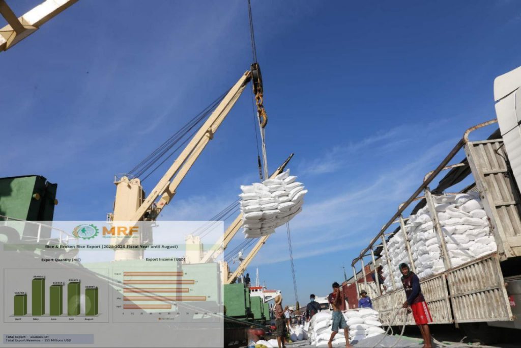 ယခု ၂၀၂၅-၂၀၂၆ ဘဏ္ဍာနှစ် ဧပြီလမှ ဩဂုတ်လအထိ ငါးလအတွင်း ပြည်ပသို့ ဆန်နှင့်ဆန်ကွဲတန်ချိန် ၁ ဒသမ ၀၃၈ သန်းတန်တင်ပို့မှုမှ နိုင်ငံခြားဝင်ငွေ ဒေါ်လာ ၃၅၅ သန်း ရရှိခဲ့ကြောင်း မြန်မာနိုင်ငံဆန်စပါးအသင်းချုပ်မှ ထုတ်ပြန်ချက်အရ သိရသည်။