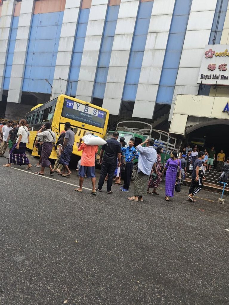 မီးပွိုင့်ပျက်နေချိန် တစ်ဖက်နဲ့တစ်ဖက် လုပြီးဖြတ်ကြရာက YBS ယာဉ်တစ်စီး ယာဉ်မတော်တဆမှုဖြစ်ပွားပြီး ရပ်ထားတဲ့ တခြားအိမ်စီးယာဉ်ငယ်တွေအပါအဝင် ကားငါးစီးခန့် ဆင့်တိုက်မှု ဒီနေ့ စက်တင်ဘာ ၈ ရက် မနက်ပိုင်း ရုံးတက်ချိန်မှာ ရန်ကုန်မြို့၊ သိမ်ကြီးဈေးအနီး၊ ရွှေတိဂုံဘုရားလမ်းပေါ်မှာ ဖြစ်ပွားခဲ့တယ်လို့ သိရပါတယ်။