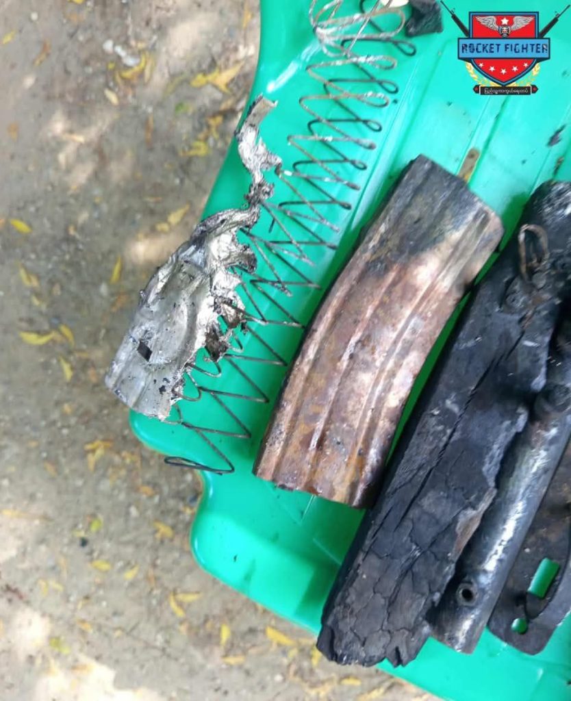 မီးလောင်မှုကြောင့် ကျည်ကာဦးထုပ် ၄ လုံး၊ ကျောပိုးအိတ် ၄ လုံး၊ ဗုံးသီး ၁၀ လုံး၊ ကျည်ဘောက် ၃ ခု၊ အီကွတ်မန့် ၄ ခု၊ အိုင်ကွန် စကားပြောစက် ၂ လုံး၊ ကလလ သေနက် ၁ လက်၊ MA 3 သေနတ် ၁ လက်နဲ့ ဆက်စပ်ပစ္စည်းတွေပျက်စီးပြီး ကာလတန်ဖိုး ကျပ်သိန်း ၅၀၀ ဖိုးလောက်ဆုံးရှုံးခဲ့တယ်လို့လည်း ဆိုပါတယ်။