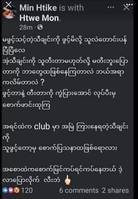 အဆိုပါဖြစ်စဉ်တွင် DJ Violet က လူမှုကွန်ရက်နှင့် သင်္ဃန်းကျွန်းမြို့နယ် မဟနထံ မိသားစုဝင်တစ်ဦးနှင့် တောင်းပန်ခဲ့သော်လည်း မင်းထိုက်ဆိုသူကမူ လူမှုကွန်ရက်တွင် ၎င်း၏ Min Htike အကောင့်မှ DJ Violet ၏ Htwe Mon အကောင့်ကို Tag တွဲကာ “ဗုဒ္ဓံ သရဏံ ဂစ္ဆာမိ” သီချင်းအား DJ တီးခတ်၍ ကလပ်တွင် မူးရူးသီဆိုမှုအပေါ် ဝေဖန်သူများအား ဆဲဆိုခဲ့သဖြင့် ၎င်းအကောင့်တွင်လည်း ပြည်သူအများက ဝေဖန်နေကြသလို ပြန်လည်ဆဲဆိုကြသည်ကိုလည်း တွေ့ရသည်။