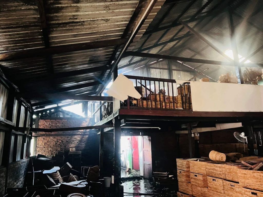 ၁၅ မိနစ်ခန့်ကြာသော မီးလောင်မှုကြောင့် ၁၀ ပေ ပတ်လည် သွပ်မိုး၊ သွပ်ကာ ကွန်ကရစ်ခင်းမြေစိုက်အဆောက်အအုံနှင့် ကြိမ်ထည်ပစ္စည်းများ မီးလောင်ဆုံးရှုံးခဲ့ကြောင်း သိရသည်။