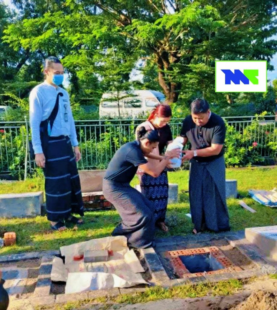 မီးသင်္ဂြိုဟ်ထားတဲ့ အရိုးပြာကိုဂူသွင်းခြင်းကိုလည်း နာရေးကူညီမှုအသင်း(ရန်ကုန်)က သရုပ်ဆောင်ထွန်းကိုကိုနဲ့ အသင်းသူ/သားတွေကူညီပို့ဆောင်ပေးခဲ့ပါတယ်။