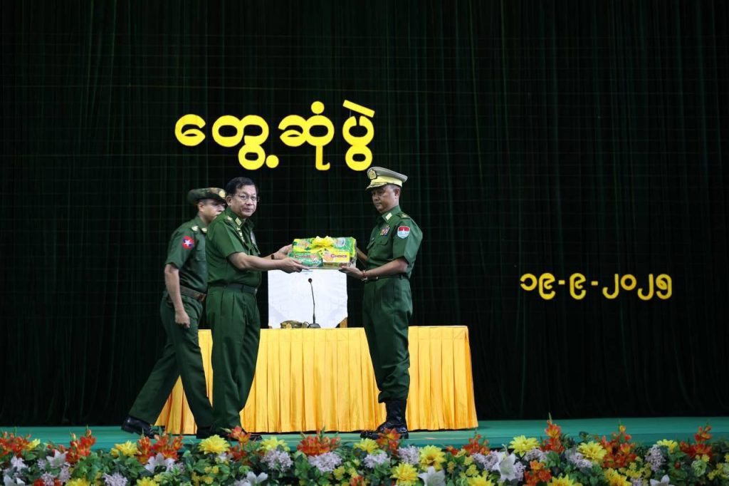 ထို့နောက် တပ်မတော်ကာကွယ်ရေးဦးစီးချုပ် ဗိုလ်ချုပ်မှူးကြီးမင်းအောင်လှိုင်နှင့် ဇနီး၊ အဖွဲ့ဝင်များက တပ်နယ်မှ အရာရှိ၊ စစ်သည်၊ မိသားစုများအတွက် စားသောက်ဖွယ်ရာပစ္စည်းများကိုပေးအပ်ရာ တက်ရောက်လာကြသည့် အရာရှိ၊ စစ်သည် မိသားစုများအား ရင်းရင်းနှီးနှီးလိုက်လံနှုတ်ဆက်ခဲ့ကြသည်။
