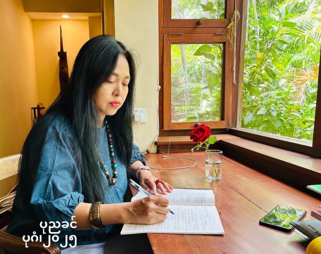 “ဒီနေ့ ကျွန်မအသက် ၅၃ နှစ် ပြည့်ပါတယ်။ ဘာလိုလိုနဲ့ ၆၀ ဘက်ကို ၃ နှစ်ဝင်လာပြီလို ပြောလို့ရပါတယ်။ ဝန်ထမ်းတွေကတော့ အသက် ၆၀ ပြည့်ရင် ပင်စင်ယူကြတယ်ဆိုတော့ ကျွန်မအသက်ကလည်း ပင်စင်ယူဖို့ ၇ နှစ်အလိုလို့ ပြောရမယ် ထင်ပါတယ်။ ဒါပေမဲ့ စာရေးတဲ့ အလုပ်ကတော့ ပင်စင်မရှိတဲ့ အလုပ်ပါပဲ။ ဒီစာရေးတဲ့ အလုပ်ကို ပျော်မွေ့နှစ်ခြိုက်လွန်းလို အလုပ်လုပ်နေရတယ်လို့တောင် မထင်မိပါဘူး။ စာရေးတာဟာ ကျွန် မအတွက် အလုပ်လည်း ဖြစ်သလို ဝါသနာလည်းဖြစ်ပါတယ်။ ပျော်ရွှင်မှုလည်းဖြစ်ပါတယ်။ အပန်းဖြေမှုလည်း ဖြစ်ပါတယ်။ အသက် ၆၀ ပြည့်သည့်တိုင် နှလုံးသားကလည်း ခုလိုနုပျိုတုန်း ဦးနှောက်ကလည်း လန်းဆန်းတုန်း ကျန်းမာရေးလည်း ကောင်းမွန်တုန်း ခရီးတွေလည်း သွားနိုင်တုန်းဆိုရင်တော့ စာတွေ ဆက်ရေးဦးမှာပါပဲ”လို့ စာရေးဆရာမ ပုညခင်က ပြောပါတယ်။