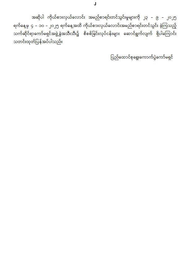အဆိုပါ ကိုယ်စားလှယ်လောင်း အမည်စာရင်းတင်သွင်းမှုများကို ၂၀၂၅ ခုနှစ် စက်တင်ဘာ ၂၃ ရက်မှ အောက်တိုဘာ ၄ ရက်အထိ ကိုယ်စားလှယ်လောင်းအမည်စာရင်းတင်သွင်းခဲ့ကြသည့် သက်ဆိုင်ရာကော်မရှင်အဖွဲ့ခွဲအသီးသီး၌ စိစစ်ခြင်းလုပ်ငန်းများ ဆောင်ရွက်လျက်ရှိကြောင်း ထုတ်ပြန်ထားသည်။
