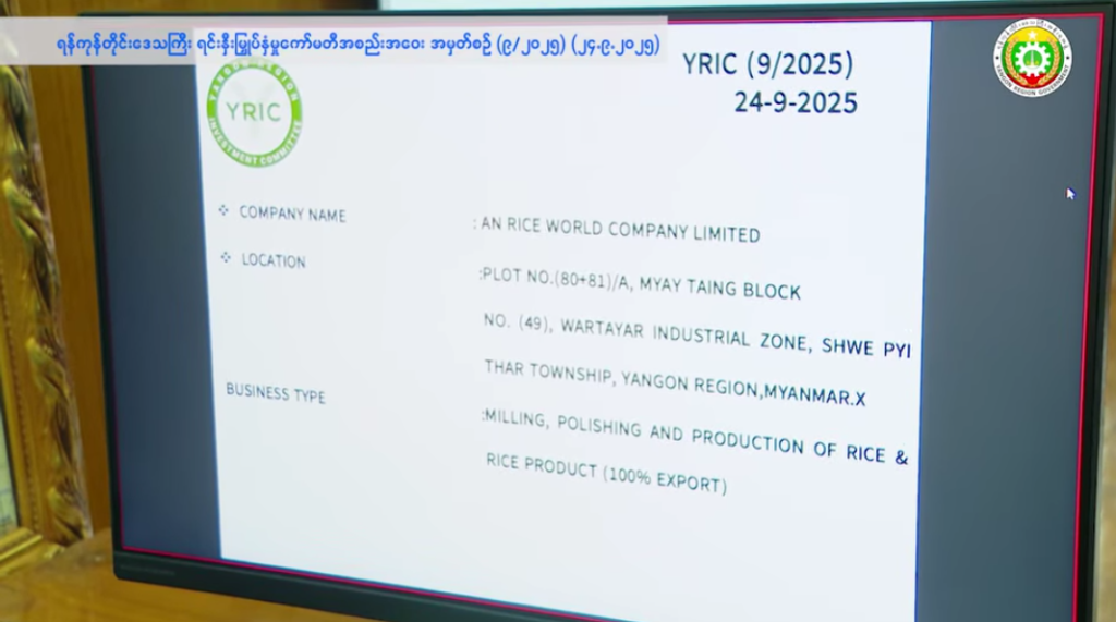 ရန်ကုန်တိုင်းဒေသကြီး ရင်းနှီးမြှုပ်နှံမှုကော်မတီ (YRIC) မှ ပြည်တွင်း အလုပ်အကိုင် အခွင့်အလမ်း ၁၄၆၈ ဦးအတွက် ဟိုတယ်နှင့် ခရီးသွားလာရေးကဏ္ဍတွင် ရာခိုင်နှုန်းပြည့် မြန်မာနိုင်ငံသားရင်းနှီးမြှုပ်နှံမှုလုပ်ငန်း (၁)ခု၊ စက်မှုကဏ္ဍတွင် ရာခိုင်နှုန်းပြည့် မြန်မာနိုင်ငံသား ရင်းနှီးမြှုပ်နှံမှုလုပ်ငန်း (၁) ခု၊ ရာခိုင်နှုန်းပြည့် နိုင်ငံခြားရင်းနှီးမြှုပ်နှံမှု လုပ်ငန်း (၁)ခုနှင့် ဖက်စပ်နိုင်ငံခြား ရင်းနှီးမြှုပ်နှံမှု လုပ်ငန်း (၂)ခုတို့ကို အတည်ပြုပေးခဲ့ကြောင်း ယမန်နေ့ နံနက်ပိုင်းက ပြုလုပ်သည့် ရန်ကုန်တိုင်းဒေသကြီး ရင်းနှီးမြှုပ်နှံမှုကော်မတီ၏ (၉/၂၀၂၅) ကြိမ်မြောက် အစည်းအဝေးမှ သိရသည်။